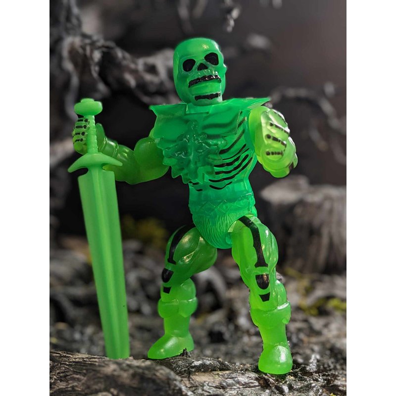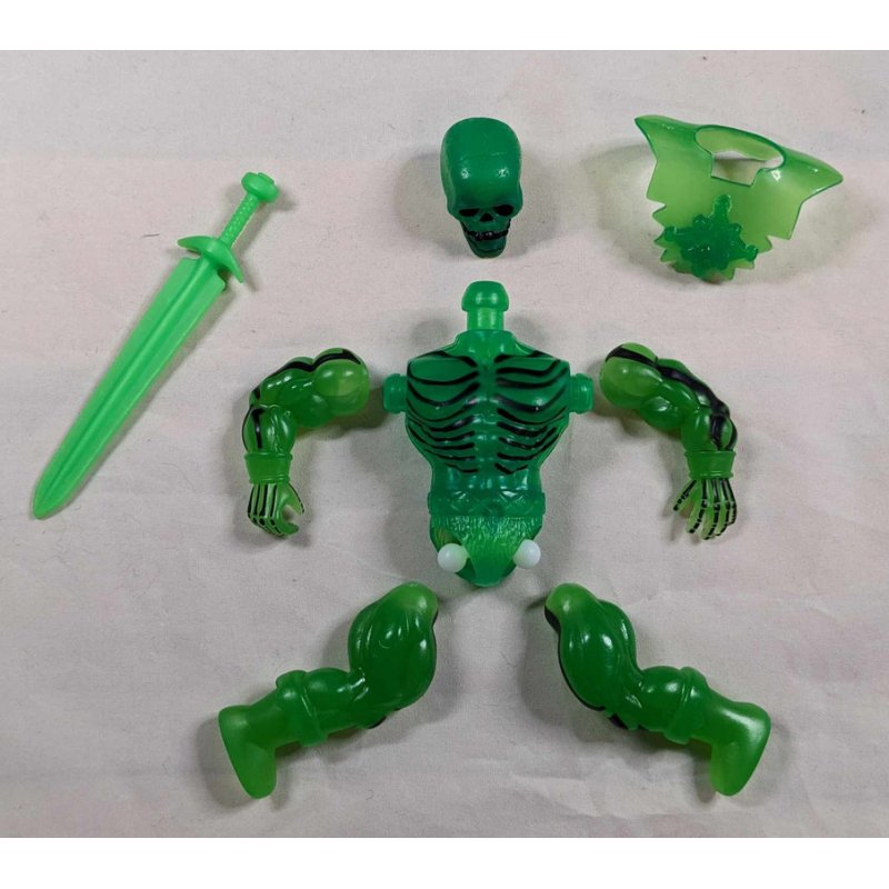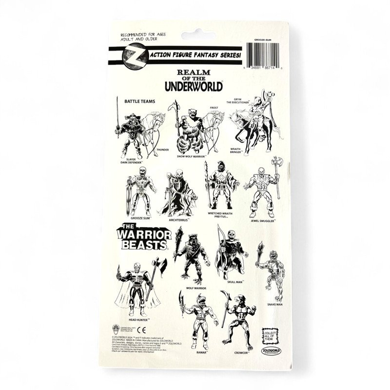 Grooze-Sum - A mortal trapped within the Stygian Swamps. He fights to free his mind from the madness! The slime saturates his skin and takes control. Only you can save him! You have the ability to free his mind! Will you free him from this evil or will you allow him to fall to darkness? It is in your control… Grooze-Sum comes with: * Interchangeable Zoloworld GLOW-IN-THE-DARK body * GLOW-IN-THE-DARK interchangeable head * GLOW-IN-THE-DARK sword * GLOW-IN-THE-DARK armor * Neal Adams card art | Faccone character panels * SCARCE LIMITED EDITION Paint master: Jean Zolotorow