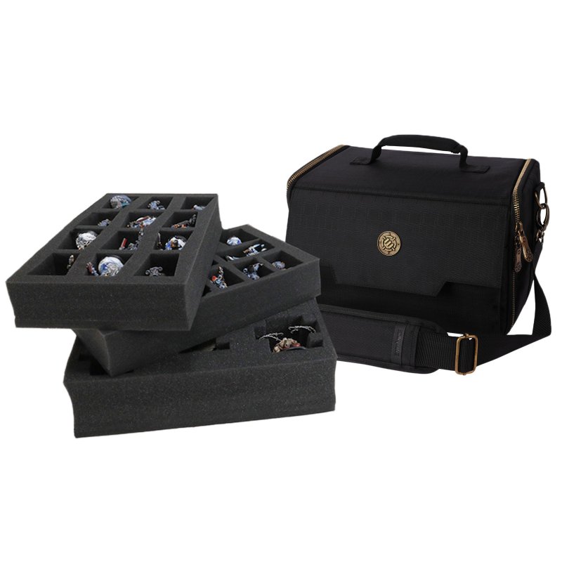 Keep your favorite heroes, villains, and monsters ready for action in this compact carrying case for miniature figures.It features 3 foam inserts to safely store and protect your miniatures: one insert with 12 compartments for miniatures with a wide base, another insert with 13 compartments for miniatures with a wide base and different compartment sizes, and a removable 60 mm insert for larger or irregular models/tanks.The padded walls of the bag provide additional protection.
