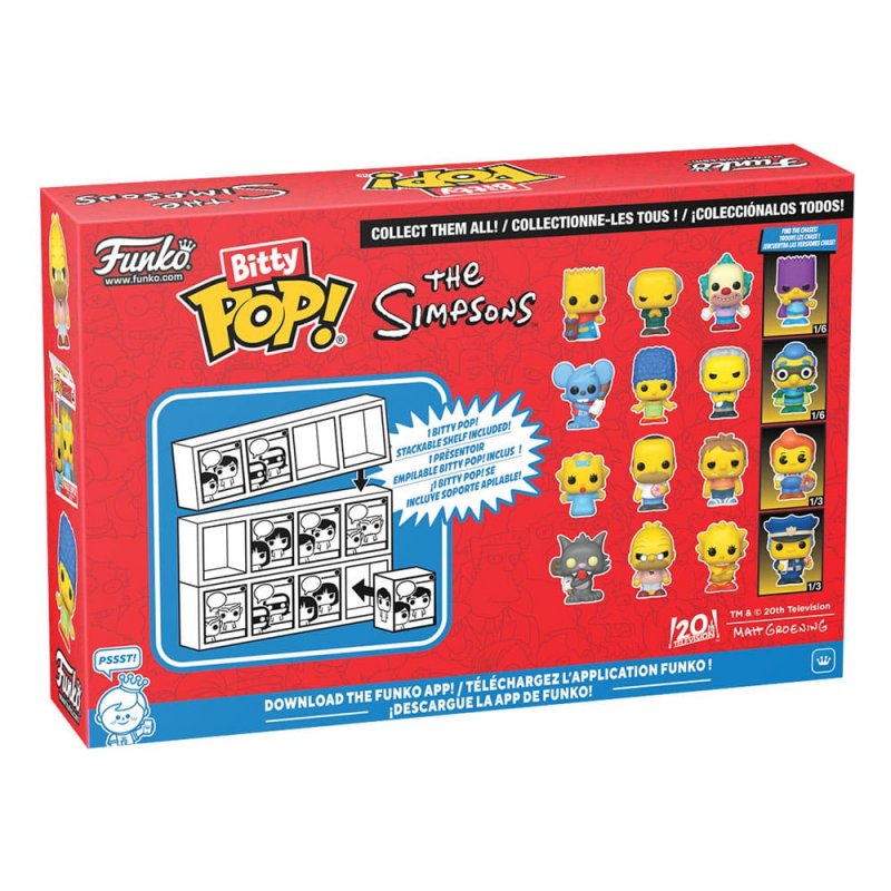 From Funko's 'Bitty POP!' series comes this pack of 4 mini POP! figures made of vinyl. Each is approx. 2 cm tall and comes with its own acrylic packaging in the usual POP! design. Included is a stackable display that can hold all four figures.Included are:- Itchy - Marge Simpson - Moe Szyslak - Chase FigureThe contents may differ from the images due to the Chase figure. Possible chase figures are:- Rare (1/3) Chief Wiggum - Rare (1/3) Lard Lad - Hyper Rare (1/6) Fallout Boy - Hyper Rare (1/6) Bartman