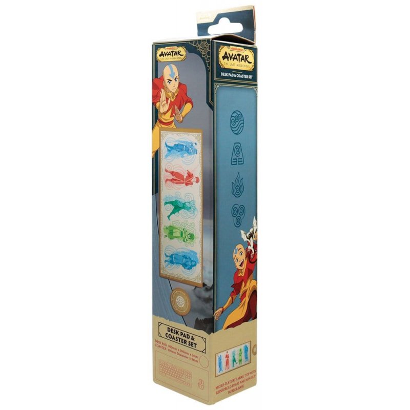 "Bring balance to your workspace with this Avatar: The Last Airbender - Elements Desk Pad & Coaster Set, inspired by the four nations, plus Aang, and the heroes who represent them. Featuring vibrant character art and elemental motifs, this set adds a touch of bending-world style to any desk, gaming setup, or study space.The large desk pad offers a smooth, comfortable glide with reinforced edges for durability and a non-slip base to keep everything firmly in place. Paired with a matching 100mm coaster featuring an elemental design, it's both practical and stylishly themed, ideal for fans who want their workspace to feel a little more... harmonious.- Officially licensed - Reinforced edges - Non-slip base - Desk pad - 800x300x3mm - Coaster - 100mm diameter"