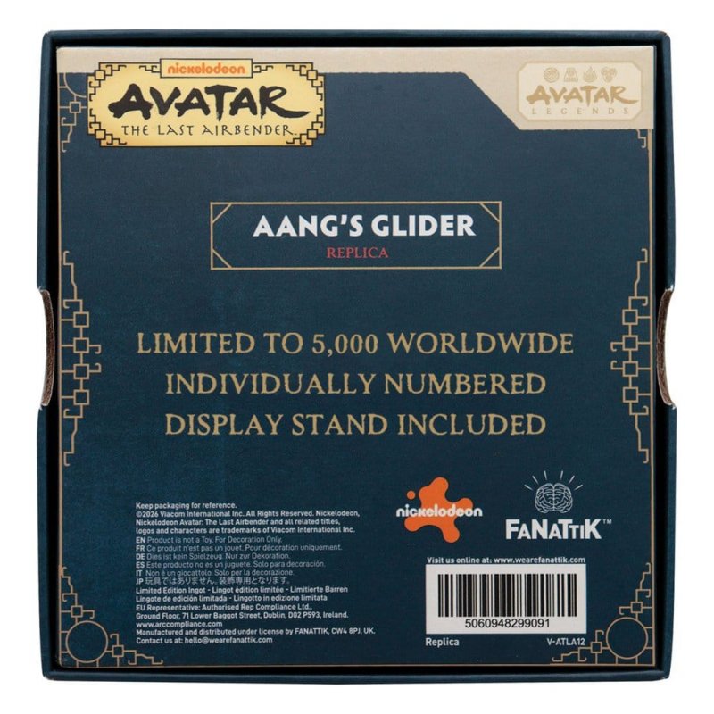 "Take flight with a piece of Air Nomad history with the iconic Glider. Inspired by the legendary staff-glider used by the last Airbender himself, this limited edition collectible is designed with an elegant antique bronze finish, creating a vibrant design and representing the unique spiritual craftsmanship of Air Nomad culture in a detailed compact display collector's item.Each replica is individually numbered and limited to 5,000 pieces worldwide, making it a rare treasure for collectors and fans who honour the legacy of Aang and the Air Nomads. Measuring 109 x 106 mm, it's perfectly sized for display and comes complete with its own display stand.- Officially licensed - Limited to 5000 - Individually numbered - Antique bronze colour - Measures 109 x 106mm - Display stand included "