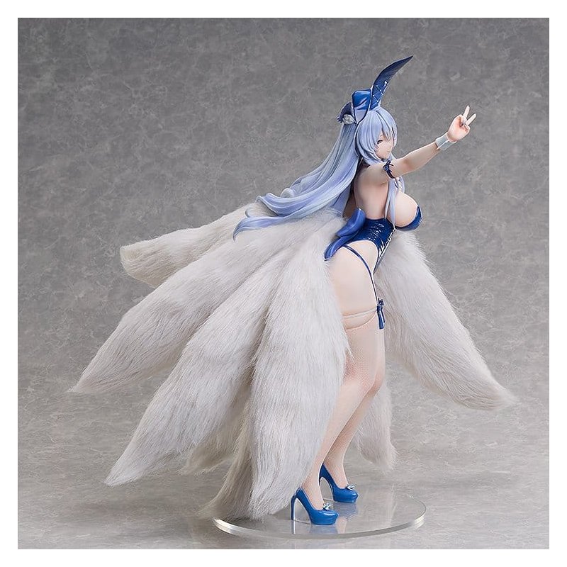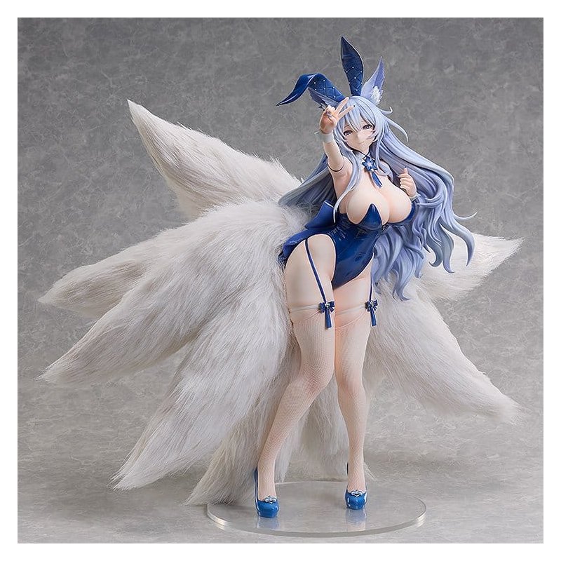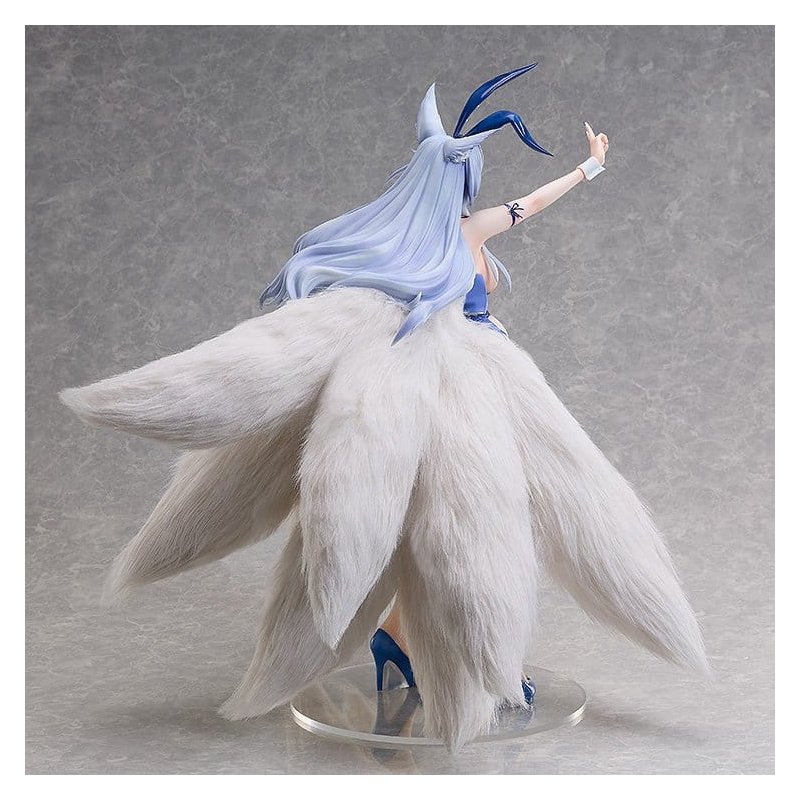 From "Azur Lane" comes a 1/4 scale figure of the Sakura Empire aircraft carrier Shinano, who has slipped into her Visions of Fantasy outfit. This long-awaited figure of Shinano in her bunny outfit is sure to make a statement with its size. Her supple body lines and facial expression were carefully recreated using the Visions of Fantasy Live2D motion as reference. Note the contrast between the glossy finish of her bunny suit, the texture of her skin, and her white fishnet stockings. Her characteristic nine tails, made of synthetic fur, are thick and soft to the touch, and you can display her with these tails in various positions thanks to the simple boning included. Everything from her long flowing hair to her ears and accessories has been sculpted with great attention to detail. The allure of Shinano in her bunny outfit has been captured with a level of fullness only possible in 1/4 scale size. Be sure to add her to your collection!