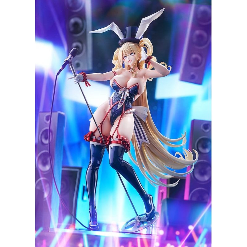 From the popular mobile game "Azur Lane" comes a figure of the Eagle Union cruiser Guam in her Stage-Setting Charmer outfit! Her gorgeous bunny girl-themed stage outfit has been faithfully captured in figure form! You'll love Guam's bright, energetic expression and voluptuous curves that work to highlight her charming appeal. Her trademark blonde twintail hairstyle is designed to convey dynamic movement and the delicate flow of each strand of hair. Her starry eyes and playful expression perfectly embody the essence of a charming entertainer. Guam's voluptuous physique is meticulously sculpted and rendered with soft skin texture painting. This figure boasts a stunning enamel gleam on its beautiful outfit and sensual thigh contours, offering eye-catching details from every angle. Don't miss this chance to add Guam's incredibly charming performance to your collection, Commander!