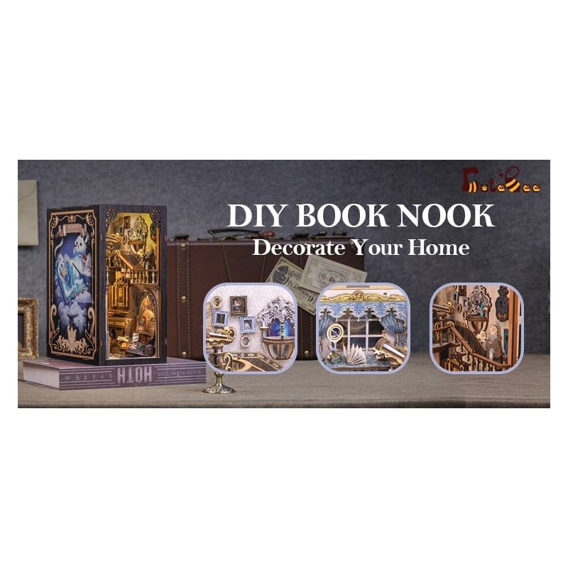 Creative Escape Between Your Books - CuteBee Book NooksCuteBee Book Nooks are more than decorative shelf pieces - they are immersive creative experiences for kids, families, and kidults, recommended for ages 12 and up. Designed as detailed 3D wooden puzzles, they offer a calm, focused building process that encourages screen-free, stress-reducing me-time.Each model follows a clear and logical structure with easy-to-understand instructions, creating quick moments of success throughout the build. The balance between engaging assembly and a beautiful final result brings a deep sense of satisfaction and relaxation. Perfect for fans of LEGO, building blocks, scale models, and Japanese model kits.The laser-cut wooden parts provide a premium feel with precise fits, clean edges, and a high-quality finish. Thanks to the Easy-Snap system, most elements can be assembled with minimal glue, making the process beginner-friendly, clean, and reversible.With a wide range of themes including fantasy, medieval worlds, magic, Asian-inspired scenes, and cozy settings, CuteBee Book Nooks offer strong collectible and resale value - clearly not a one-time purchase item.Note: Batteries and wood glue are not included.