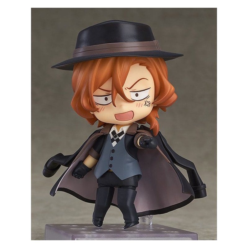 From the anime series 'Bungo Stray Dogs' comes a rerelease of Nendoroid Chuya Nakahara, one of the executives of the Port Mafia that have strong control over the ports! He comes with three face plates including his standard expression, a belligerent combat expression as well as a humiliated angry expression.The long black coat he wears over his shoulders as well as his hat can both be removed for different posing options. Optional parts include his knife to place him in poses that show him off as the strongest martial artist in the Mafia, and he even comes with parts that allow you to pose him with walking pigeon-toed just as Osamu predicted! Be sure to display him with Nendoroid Osamu Dazai (sold separately)!Made at GSC's 'Lucky Factory' in Tottori, Japan. This product will be made at Good Smile Company's 'Lucky Factory' in Tottori, Japan. The product will be proudly 'Made in Japan', and sent all over the world for fans to enjoy!