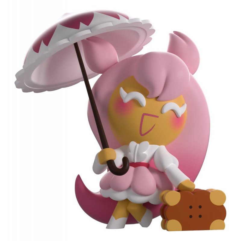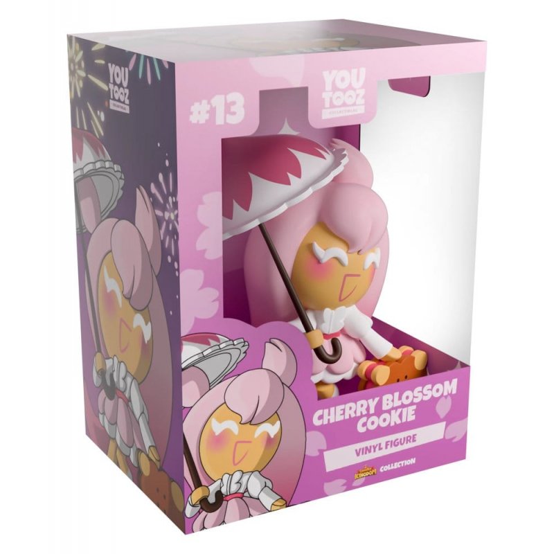 Cherry Blossom Cookie heard the flowers are just spectacular at Youtooz this time of year, so she packed her bags and came along to take a look with her vinyl debut! Standing at 10 cm tall and holding a pink and white parasol in her right hand as her left rests on the brown cookie suitcase at her front, a thick fringe falls over her excited, smiling face as white eyes rest above blushing cheeks and long pink hair curls behind her in a pointed swish. With one knee raised as she takes a gleeful step forward, she wears a layered pink and white dress with puffy sleeves along with matching shoes. The exterior of their packaging is filled with cherry blossoms as fireworks explode in the purple sky, while the pink striped interior is speckled with stars, flowers and petals. The protective sleeve is then designed to look like the layers of cake with icing and flowers on the top as the figure can be seen through the large clear window at its front. This collectible ships in a matte, embossed, protective outer sleeve and a custom-sized plastic protector for maximum protection during shipping. About Cookie Run Kingdom Cookie Run Kingdom is the 8th game developed by Devsisters in the Cookie Run series. The game features both real-time battle strategy and city-building gameplay with a cast of unique cookies for the players to pull for and collect as well as a customizable kingdom. The games story takes place with a group of cookies creating their own kingdom, going on adventures to explore other kingdoms, and unraveling the mysteries of the Ancient Heroes who disappeared from the world.