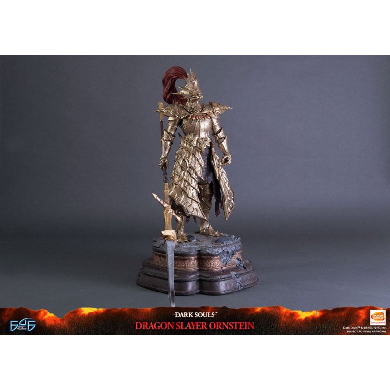 First 4 Figures is proud to present the highly anticipated Dark Souls - Dragon Slayer Ornstein. One of Lord Gwyn's trusted knights, Ornstein was believed to be the captain of the Four Knights of Gwyn. With being the captain, he was granted a special soul and the Leo Ring by the Lord of Sunlight. Donning golden armor that was permeated with the power of lightning, it was made to resemble a lion. It was said that Ornstein's spear could slice a boulder in two. Using his spear, Ornstein was left to guard the cathedral at Anor Londo alongside Executioner Smough after the gods fled. At some point in time, Ornstein left his guarding duty at the cathedral to search for the Nameless King. It is not certain how Ornstein survived his battle against the Chosen Undead, but he eventually made his way to Archdragon Peak which is where the Nameless King is said to be. However, Ornstein's fate and the results of his search remains unknown. Product Size: 67 x 56 x 79 cm
