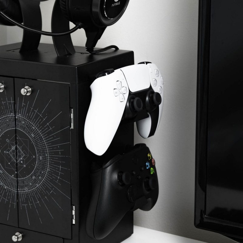 - Officially licensed - Storage for 10 PS4/Xbox games or movies - Storage for up to 4 controllers - Headphone holder - Drawer for cables and other accessories