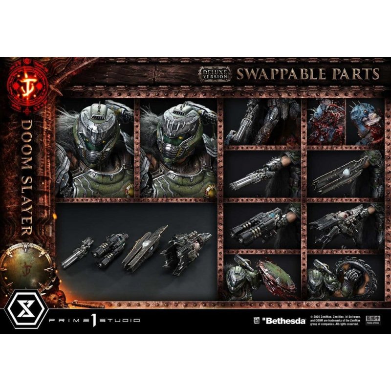 "Shatter the legions of Hell and push through the Dark Ages. The origin of the DOOM saga, expressed in 1/4 scale. From the latest entry exploring the origins of this acclaimed FPS saga, ""DOOM: The Dark Ages,"" the protagonist DOOM Slayer joins the Ultimate Premium Masterline. This piece captures a split second of the Dark Ages battle against endless demon hordes in 1/4 scale. With a dynamic pose wielding the Super Shotgun and the Shield Saw, it embodies the thrill of combat-its very essence, its catharsis. Evoking dark fantasy, the armor is finished with a sinister edge down to every spike. A wild fabric cape further amplifies the intimidation of his massive proportions. In addition, the custom base piled with demon remains, along with LED units embedded throughout, heightens the brutality of the scene and the Slayer's overwhelming presence. The Shield Saw, slicing foes in a spray of blood. Firearms such as the Pulverizer. A wide array of additional parts is included as well. By swapping the head, arms, or even the soldier's expression beneath his feet, you can create a variety of scenes. A high-detail expression of the DOOM saga's origin-an art piece dedicated to Slayers around the world. " Product Specifications: - DOOM Slayer - 2 x Swappable Heads (Helmeted: Downward-Facing, Right-Facing) - 2 x Swappable Right Arms (Lowered, Horizontal) - 4 x Swappable Right Hands for Horizontal (Super Shotgun, Chainshot, Pulverizer, Cycler) - 2 x Swappable Left Arms (Shield Saw: Normal, Bloody) - LED Illumination (Eyes Inside Helmet, Tether, Chainshot, Cycler) - DOOM: The Dark Ages-Themed Base with LED Illumination - 2 x Swappable Soldier Heads (Damaged, Undamaged) LED Power Supply Method: TBD * Please prepare batteries, USB cables, or other necessary items depending on the final power supply method. "