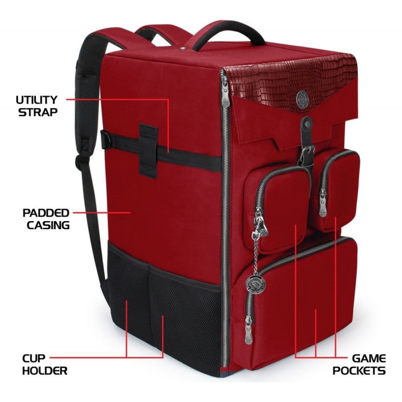 This Collector's Edition backpack offers a huge capacity for board games, card games, and RPG accessories, upgraded with a unique "Dragon Scales" design.- Edition: Collector's Edition (incl. metal charm & sticker) - Interior Dimensions: 53 x 32 x 32 cm - Exterior Dimensions: 58 x 37 x 33 cm - Design: Reinforced & padded, supports up to 27 kg (60 lbs) - Features: Game pockets, side pockets for battle maps, interior support strap