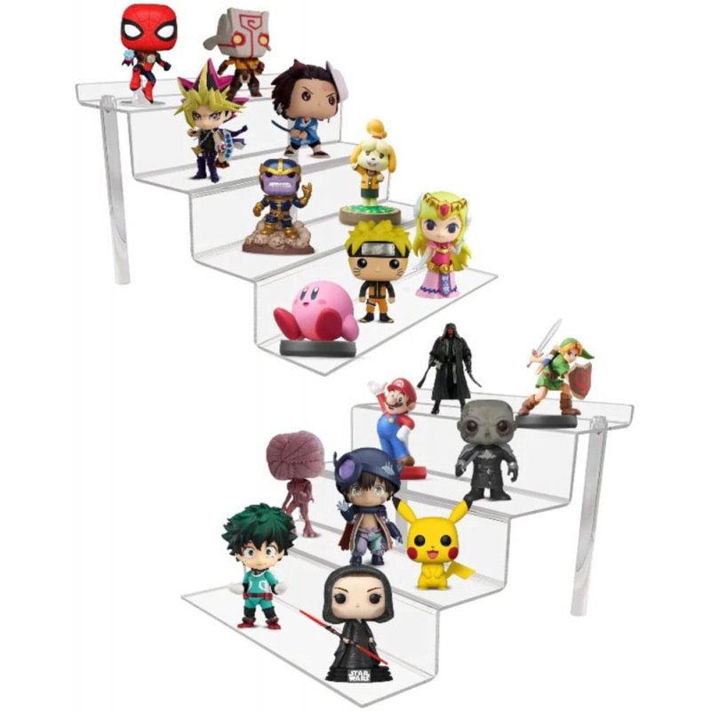 Elevate your collection with EVORETRO Acrylic Risers, designed for showcasing action figures looses, Funko Pops, Nendoroids, Amiibos, and more. These 4-tier stands, made of sturdy 3MM thick acrylic, provide an impeccable display for your collectibles. With taller and wider steps, they are perfect for larger figures. Easy to assemble, these risers with dimensions of 14.5 x 8.2 x 6 inches quickly become the centerpiece of your collection. Ideal for collectors and as gifts, these stands will transform any collection into a spectacular displaySize: 21 x 15 x 37 cm