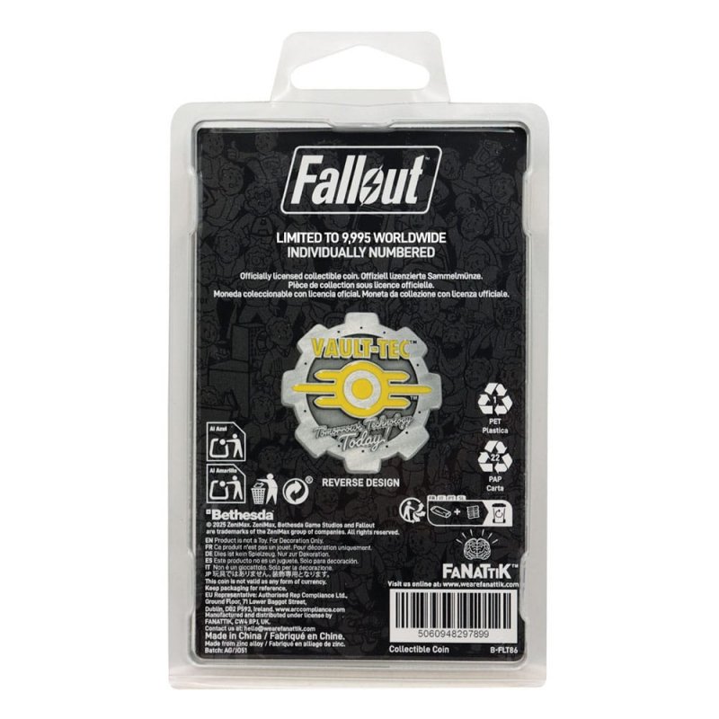 ""A better future... underground," or so you were told. Made famous in the opening moments of Fallout 4, Vault 111 is where your characters journey into the Wasteland begins and is commemorated here with this detailed collectible coin.Crafted in the shape of the iconic vault blast door, this coin features bold yellow enamel detailing and an intricate double-sided design that captures the spirit of Fallout's retro-futuristic world! As a true tribute to Fallout 4's unforgettable opening chapter, the edition size of this coin is limited to 9995 pieces worldwide with each coin is individually numbered.- Limited to 9995 - Officially licensed - Diameter 38mm - Enamel detailing - Double-sided design - Protective acrylic cup "