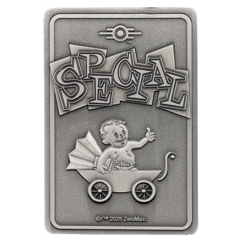 Max out your stats the Vault-Tec way with the Fallout – S.P.E.C.I.A.L. Perk Card Ingot Collector’s Album, a collector’s set celebrating the seven core perks that shape every wasteland wanderer. Inside this limited edition album you’ll find seven metal perk ingots, each showcasing its corresponding S.P.E.C.I.A.L. artwork with vibrant enamel detailing and a double-sided design, created to bring every card to life.Album size: 158 x 220 x 18 mm. Each ingot measures 75 x 50 mm.
