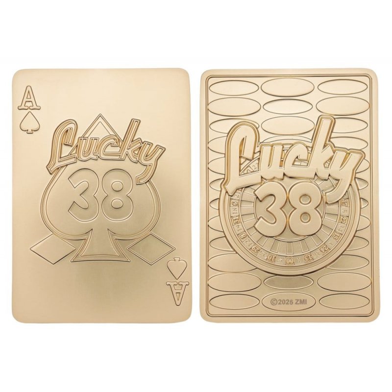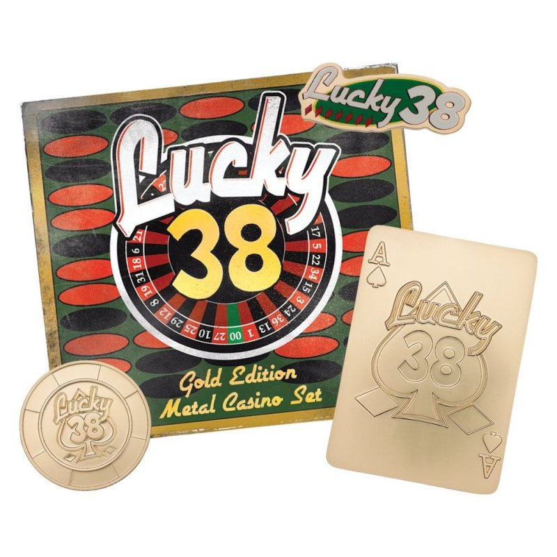 "Step right up to the most exclusive spot on the Strip with this Lucky 38 Imitation Gold Casino Set, a trio of shiny treasures made to look like they were swiped straight from Mr. House's personal stash.Inside the box, you'll find:- Lucky 38 Pin Badge - 45 × 18.2 mm - Lucky 38 Poker Chip - 38 mm - Metal Playing Card - 90 × 63.5 mmLimited to 5,000 sets worldwide, each themed box is individually numbered on the reverse and measures 135 × 125 × 25 mm. Perfect for Fallout fans, casino lovers, and anyone who enjoys a little pre-war glamour with their wasteland adventures. Place your bets... luck is definitely on your side- Officially licensed - Limited to 5,000 - Imitation gold plating - Individually numbered to box - Includes x3 items"