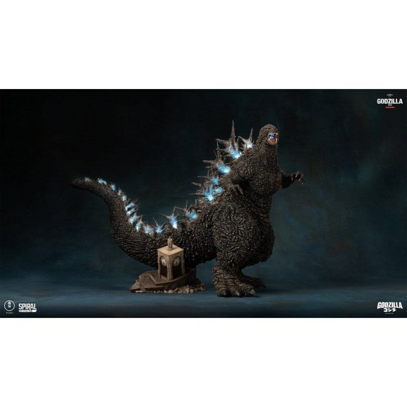 Spiral Studio proudly unveils The Legacy Series - Tanaka Kenichi Modeling Collection: Godzilla 2023 (Deluxe Edition), an elevated expression of cinematic realism and premium craftsmanship, created for collectors who seek the ultimate presentation of Godzilla.Sculpted by master artisan Tanaka Kenichi, this Deluxe Edition retains the same authoritative pose inspired directly by the official poster of Godzilla Minus One, depicting Godzilla standing resolutely amid the ruins of Ginza. The stance, proportions, and surface detailing are meticulously engineered to convey overwhelming scale, weight, and presence-faithfully preserving the dramatic impact of this iconic moment.What sets the Deluxe Edition apart is its enhanced treatment of the dorsal fins. Crafted using translucent materials, the dorsal plates achieve a heightened sense of depth and realism, accurately reflecting the on-screen appearance. Integrated LED illumination further brings this feature to life, recreating the unmistakable glow that signals Godzilla's immense power. When illuminated, the statue gains a dynamic visual presence that transforms it from a static display into a vivid cinematic centerpiece.As with the Standard Edition, all sculptural details and paint applications are executed with absolute fidelity to official production assets. From the finely layered skin textures to the carefully balanced color tones and subtle weathering effects, every element reflects Spiral Studio's uncompromising quality standards.As the definitive version within The Legacy Series, the Deluxe Edition represents the pinnacle of this release-uniting masterful sculpting, advanced materials, and lighting technology into a commanding tribute to modern Godzilla. This is a statement piece designed to stand at the forefront of any serious collection.Don't miss your chance to add this Godzilla 2023 (Deluxe Edition) Statue by Spiral Studio to your Godzilla collection today!Size: 53 x 40 x 88 cm (21" H x 15.74" W x 34.64" L)