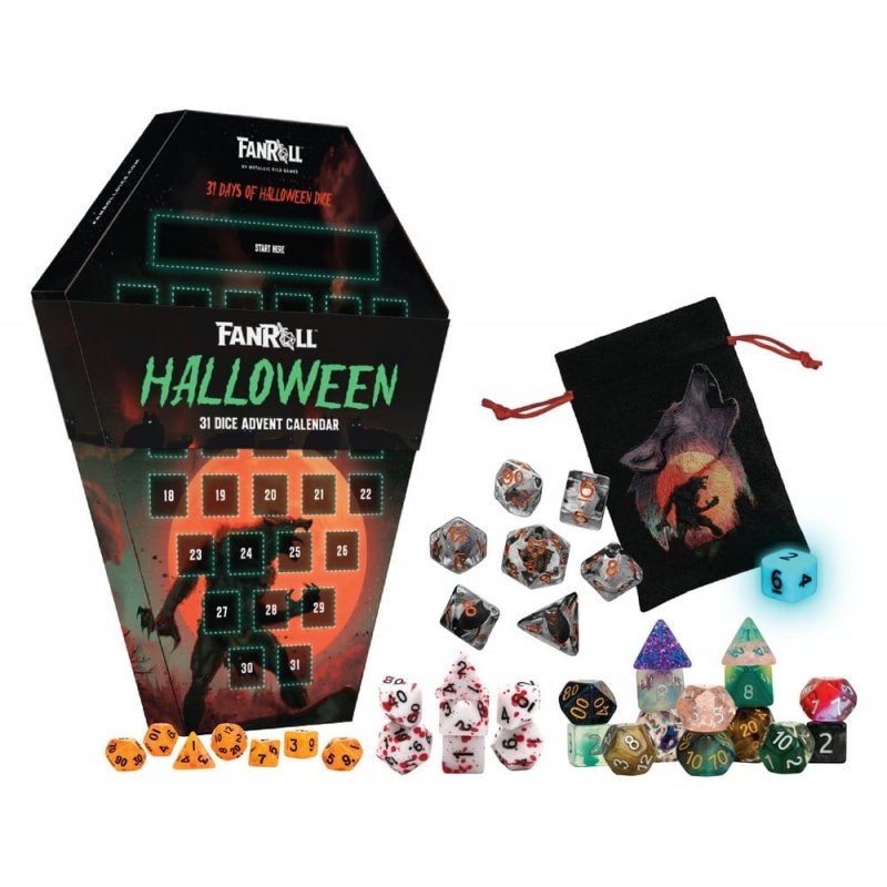 The FanRoll Halloween advent calendar is back with a vengeance in 2026. This year the brand brings a wolf theme to the table in a countdown that includes wolf inclusions, blood splattered dice, mini dice, metal dice and a creepy new werewolf dice bag. The Halloween advent features 31 days of dice-based doom to count down to Halloween!