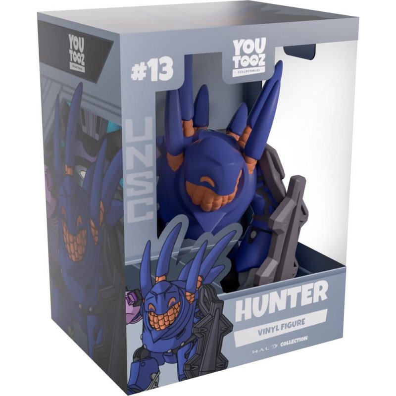"The hunters have come to our aid. They will fight by our side"Crashing through the walls of Youtooz for their explosive debut! Kneeling at 5.1 inches tall and thrusting a purple assault cannon with green cartridges forward with their right arm, they slam a thick grey metal shield into the ground in front of their left knee as protection from oncoming fire. With a mass of orange Lekgolo swarming inside the grey and blue armor to make up their thick body, a small angled helmet covers where their head should be as six long spikes extend from their back. The exterior of their packaging looks into the purple and grey hallways of a ship, while the light grey interior is covered in angled patterns which extend onto the protective sleeve with the UNSC logo as their figure can be seen through the large clear window at the packaging's front. This collectible ships in a matte, embossed, protective outer sleeve and a custom-sized plastic protector for maximum protection during shipping.About Halo:Halo is a military science fiction franchise which spans multiple FPS and strategy games, novels, comics, animated films and a live-action series. While the mainline games follow Master Chief in his battles against the Covenant, Flood and Forerunners for the sake of the human race, its expansive universe is filled with deep lore and endless stories of the people, and aliens, that inhabit it.