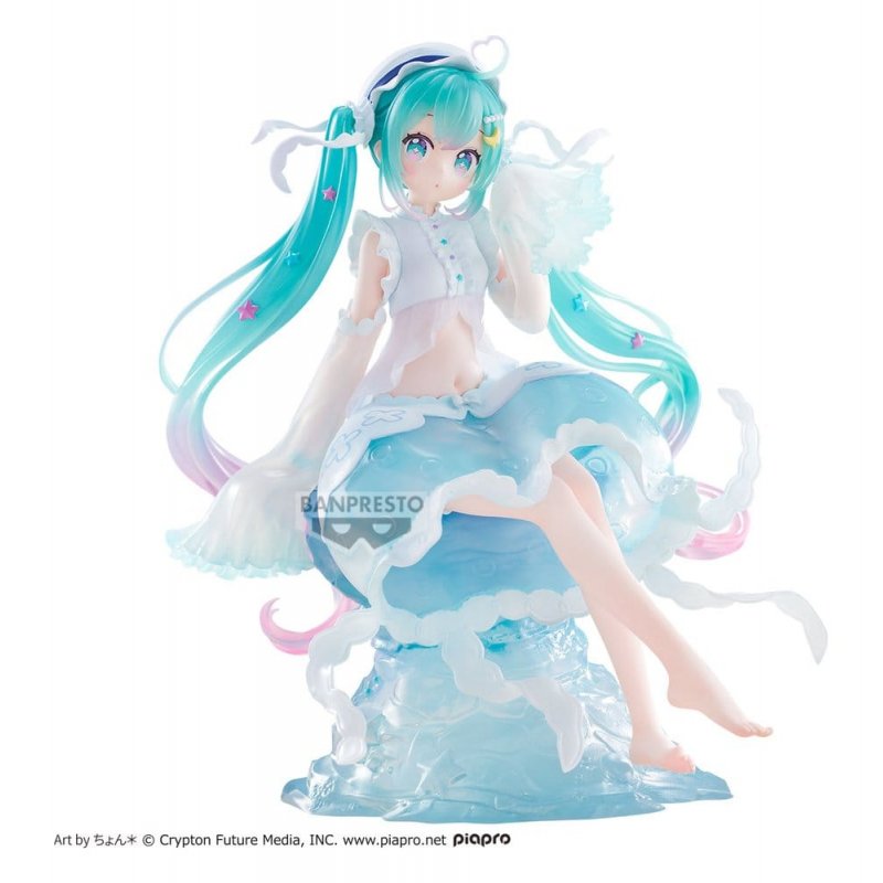 This is a PVC figure from Banpresto's Banpresto Evolve line, based on the license Hatsune Miku. It features the character Hatsune Miku in a Jellyfish style and stands approximately 20 cm tall.