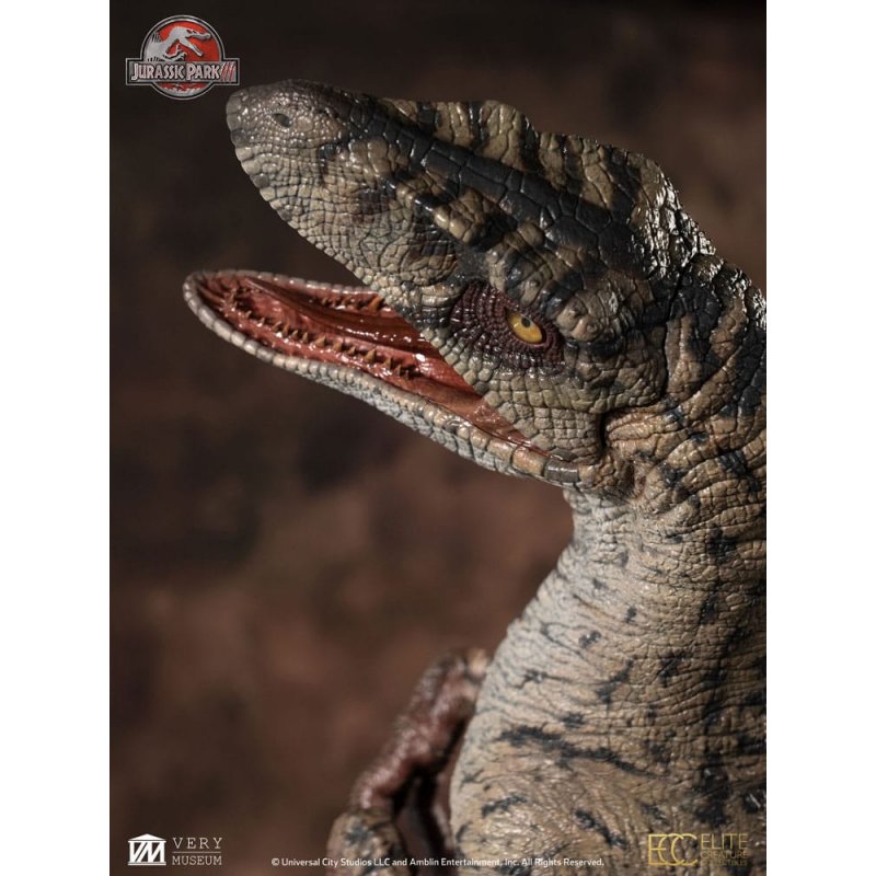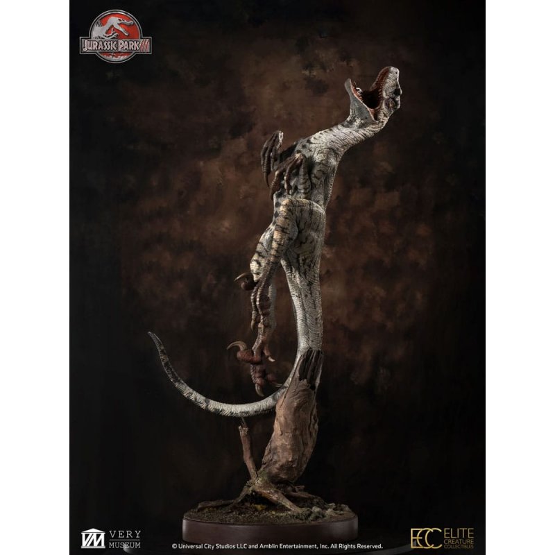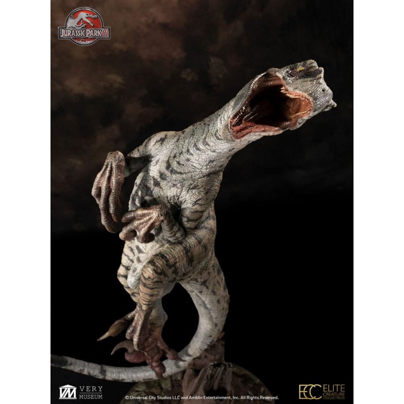 Jurassic Park III is a 2001 science fiction-adventure film, serving as a sequel to The Lost World: Jurassic Park and the third entry in the Jurassic Park franchise. In the movie, Velociraptors demonstrate exceptional intelligence and coordinated teamwork.When Udesky becomes separated and runs into the jungle, he encounters more raptors who attack him. They use his crippled body as a trap to lure Billy and the Kirbys down from the tree where they are hiding. After the trap fails, one of the raptors kills Udesky by snapping his neck before departing in response to a call from another member of the pack.Continuing to expand its collection for fans and collectors, Elite Creature Collectibles is proud to present the quarter-scale Female Raptor "White Queen" maquette from Jurassic Park III. Created in collaboration with ECC key artist Oskar Ankarudd-who faithfully recreated the original model at full scale-the paint master was also hand-painted by Ankarudd himself.Specifications:- Approximately 40.55 inches (103 cm) in height. - Approximately 17.72 inches (45 cm) in width. - Approximately 14.37 inches (36.5 cm) in depth. - Museum Style Display Base. - COA Signed by Bitan & Oskar Ankarudd. - Limited in production to 120 units worldwide - Estimated shipping Date: Q3 2026 - Made to Order.Preorder Bonus!! The first 100 customers will receive a Velociraptor foot claw (claw-B) as a bonus part.Limited in production to 120 pieces worldwide.