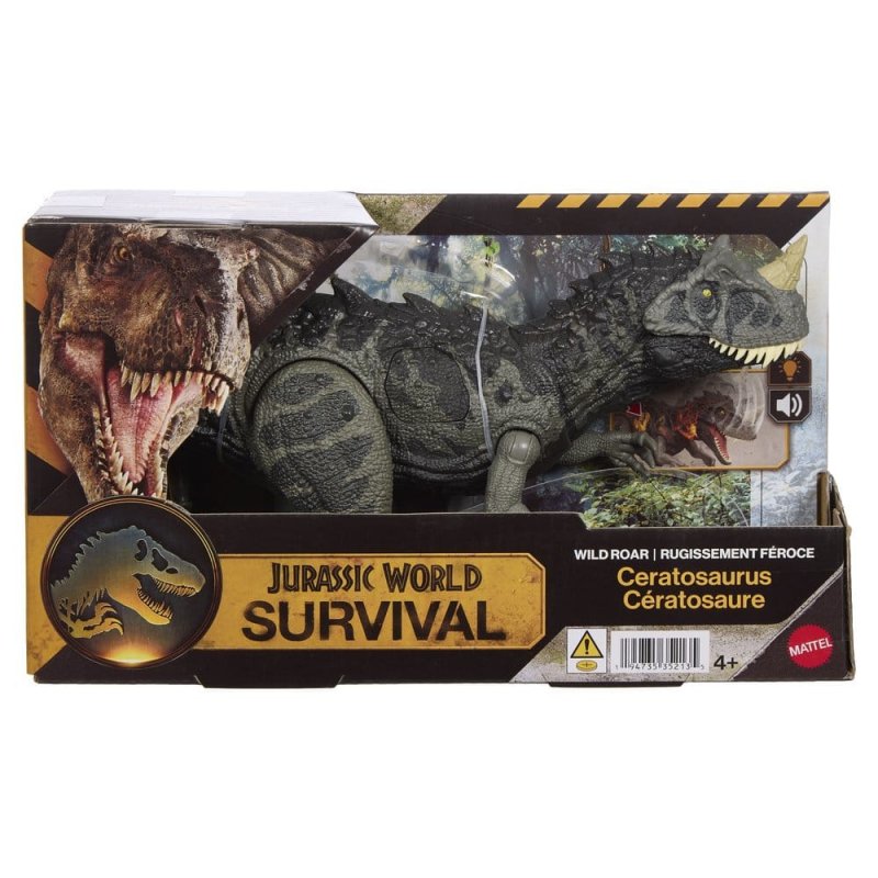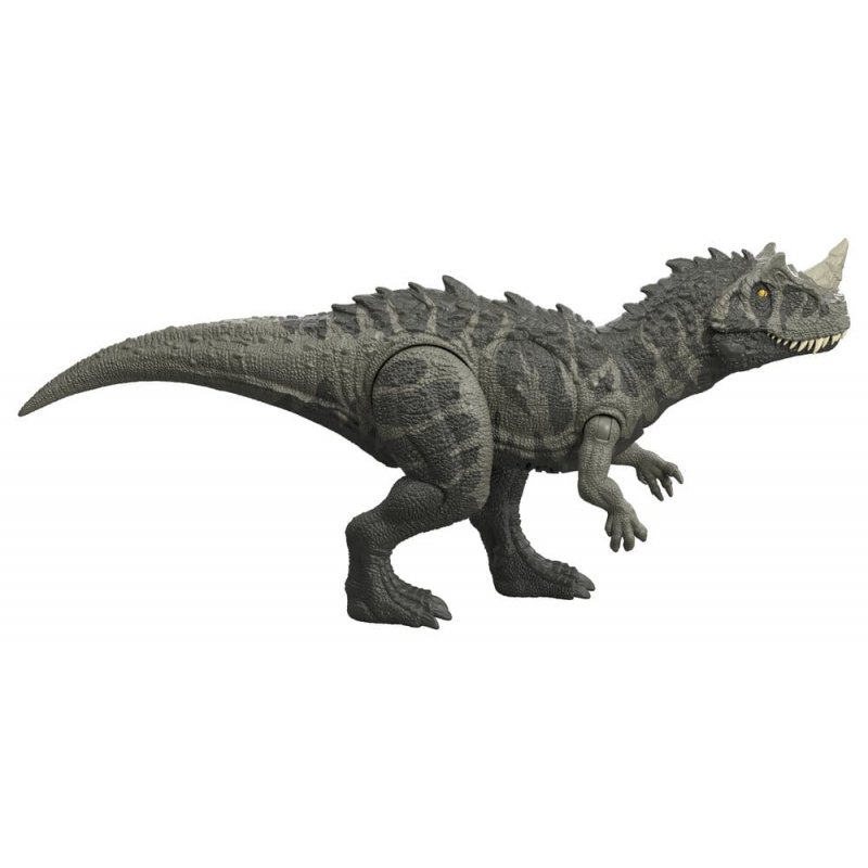 Things are about to get wild with these Jurassic World Wild Roar dinosaur toys, inspired by the Jurassic World franchise. Several dinosaur species are available separately. Children can move each figure's tail up and down to trigger an exciting attack move accompanied by a wild roar. To change the direction of the attack, simply rotate the tail. Each of the approximately 30.5 cm long, film-inspired dinosaurs has movable joints and is ready for hours of exciting play. By scanning the tracking code on the dinosaur's foot in the free Jurassic World Play app with a compatible smart device (Android or iOS, not included), a digital version of the dinosaur and a fun game are unlocked, in which you can race with different vehicles on land, in the air and in the water. A great gift for dinosaur fans aged 4 and up. Colours and designs may vary.