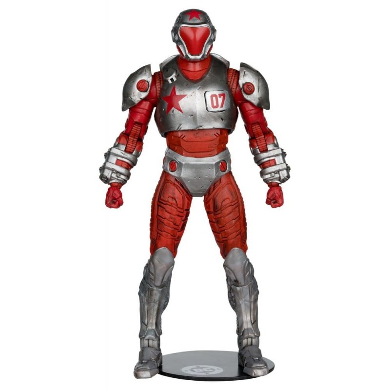 The Rocket Red Brigade was commissioned by Russia's rulers as a military-controlled response to metahuman threats and proliferation. The technology is a combination of human ingenuity and alien bio-engineering, thanks to the contributions of Green Lantern Kilowog, who innocently offered his aid while on a fact-finding mission to Russia. Rocket Reds were part of the first Justice League International team. The first was exposed as an android Manhunter infiltrator, while the second-Dmitri Pushkin-died battling renegade O.M.A.C. units. Currently composed of older units and more modern upgrades, Rocket Reds now solely protect Russian interests, with reports of potential international incidents involving Supergirl, Peacemaker, and China's New Super-Man.- Incredibly detailed 7" scale figure based on the DC MULTIVERSE™ - Designed with Ultra Articulation with up to 22 moving parts for full range of posing and play - ROCKET RED BRIGADE™ as featured in DC™ comics - Accessories include 3 number plates, 2 rocket effects and figure display base - Also includes collectible art card with character art on the front, and character biography on the back - Collect all McFARLANE TOYS™ DC MULTIVERSE™ figures