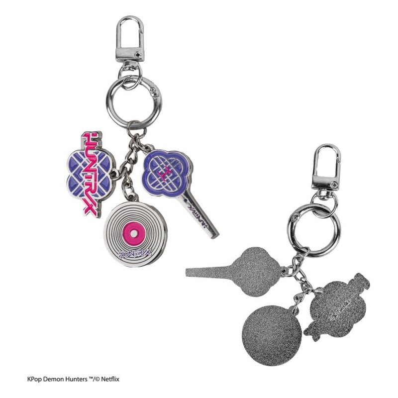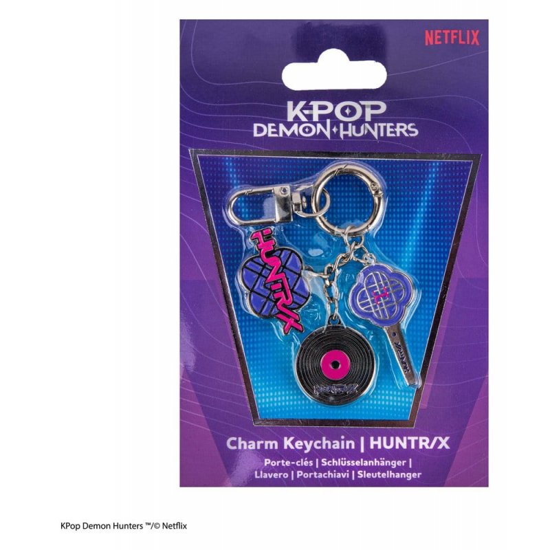 This is a charm keychain from the KPop Demon Hunters license, featuring the HUNTR/X design. Made from 100% Zinc Alloy.