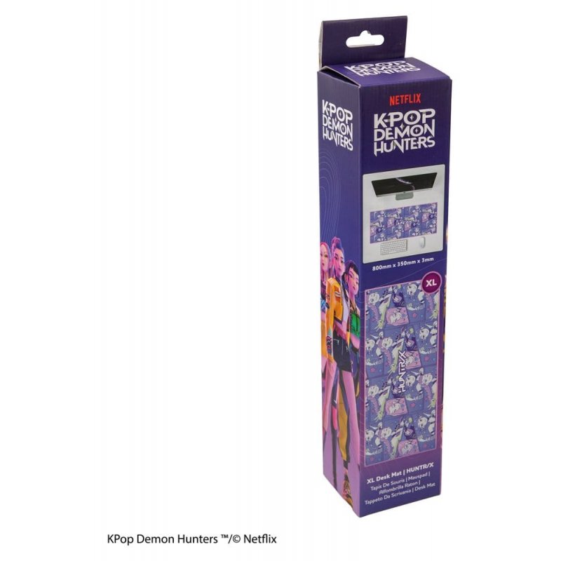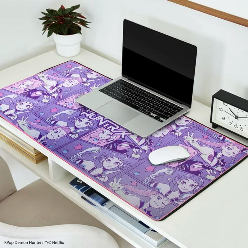 This is an XL desk mat from the KPop Demon Hunters license. It features the HUNTR/X design. Size: 80 x 35 x 0.3 cm (31.5" x 13.8" x 0.1")