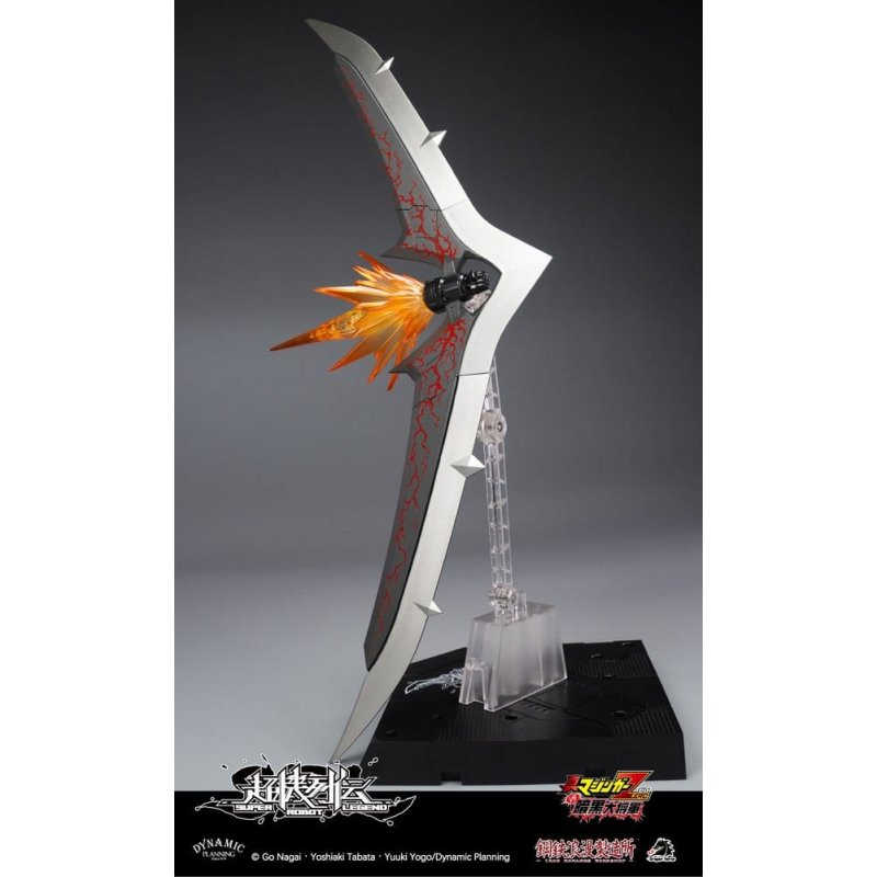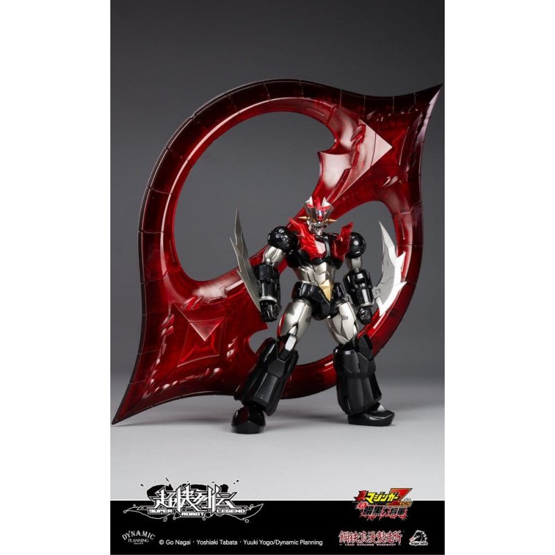 Under the collaboration between IRON ROMANCE WORKSHOP and DRAGON HORSE, the "Super Robot Legend" series welcomes the arrival of the Demon God of the End-MAZINGER ZERO!Despite its compact height of only 11.5cm, the figure boasts astonishing articulation. Dynamic poses such as the iconic folded-arm stance and ground-punch attacks can be recreated with ease. A spring mechanism is built into the calves, allowing the calf armor to automatically retract and return when the knees are bent to their maximum range. Furthermore, even with a head measuring less than 1cm, the mouth-opening gimmick is fully functional.The main body is made entirely of rigid ABS material, excluding the wrist parts. This ensures a sharp, refined appearance, while all screw holes are internally concealed to preserve the exterior aesthetics. The perfect balance between articulation, proportions, and visual design is truly a testament to master craftsmanship.A wide range of accessories is also included. The 28cm-diameter "Zero Scrander" and the 38cm-long "Giant Iron Cutter" are far larger than the main body itself, faithfully recreating the overwhelming scale and impact from the original work. The "Rocket Punch" thruster effect parts for both arms can be connected together, increasing their size and allowing them to be used as an effect for the "Giant Iron Cutter."This definitive edition of MAZINGER ZERO represents the culmination of Iron Romance Workshop's technical expertise. Experience its overwhelming presence in your own hands!