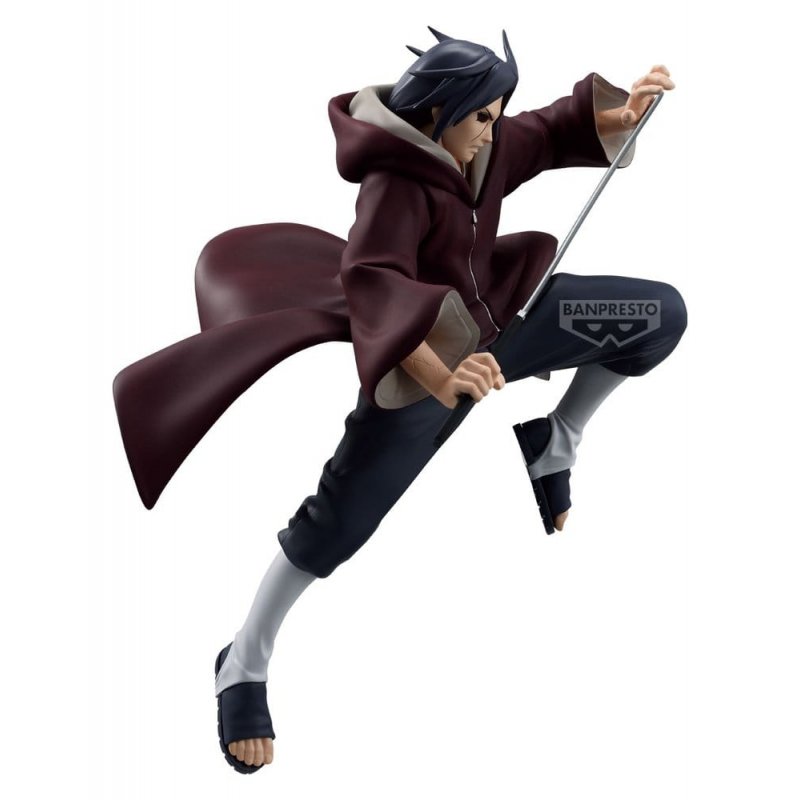A dynamic PVC figure of Itachi Uchiha from Banpresto's 'Vibration Stars' line. This 18 cm figure from Naruto Shippuden features Itachi in an action-packed pose, showcasing his power and grace.
