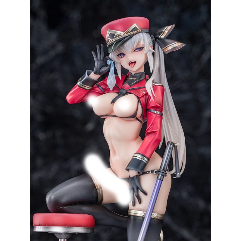 Popular illustrator Ban!'s original character, "DUE·ROSSO" has been turned into a scale figure! This character was designed with a guard chosen as the motiff. At a glance, just seeing daring uniform and our futanari's alluring facial expression makes this figure worth ogling! Of course, this figure comes with a futanari function for artillery protection, so crotch parts can be interchanged for utility ammunition. Our guard also comes with an interchangeable face part with an attached gas mask. You can freely display with any combination you like. Please consider picking up this beauty and erect "DUE·ROSSO" as the guard of your collections!