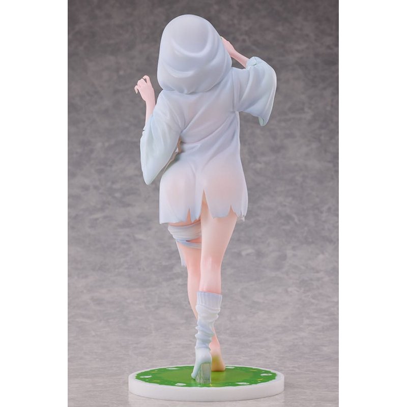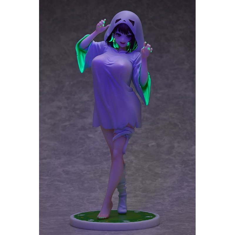 Ormille's original character "Miru" makes her debut as a 1/6 scale figure dressed in an adorable Halloween Ghost costume!Her slightly cheeky mischievous smile, the cute yet menacing"gaoh"pose, and her ghostly cloak available in black and white variants have all been faithfully recreated in 3D, capturing the full charm of the original illustration.A body line that cannot be fully concealed by clothing is one of this figure's appeal. the cast-off outfit makes it possible to enjoy Miru's beautiful body line such as smooth curved hips, fleshy thighs and glossy skin.Details that were hidden in the original illustration are now brought to life! Her yummy navel, chest and thigh moles, and the elegant lines of her glorious back are elaborately sculpted.The figure comes with 2 interchangeable face parts, you can change her facial expression according to your preference: A smiling expression and a serious expression. Bring "Miru" home as part of your collection, adding the final touch to your next Halloween set-up!