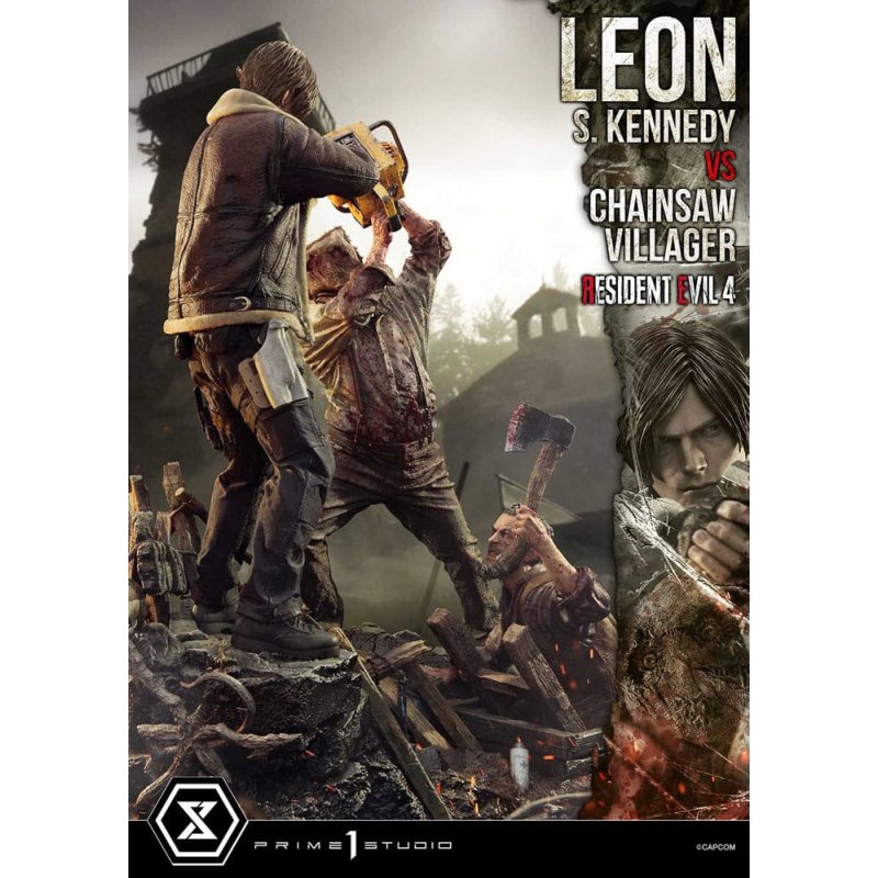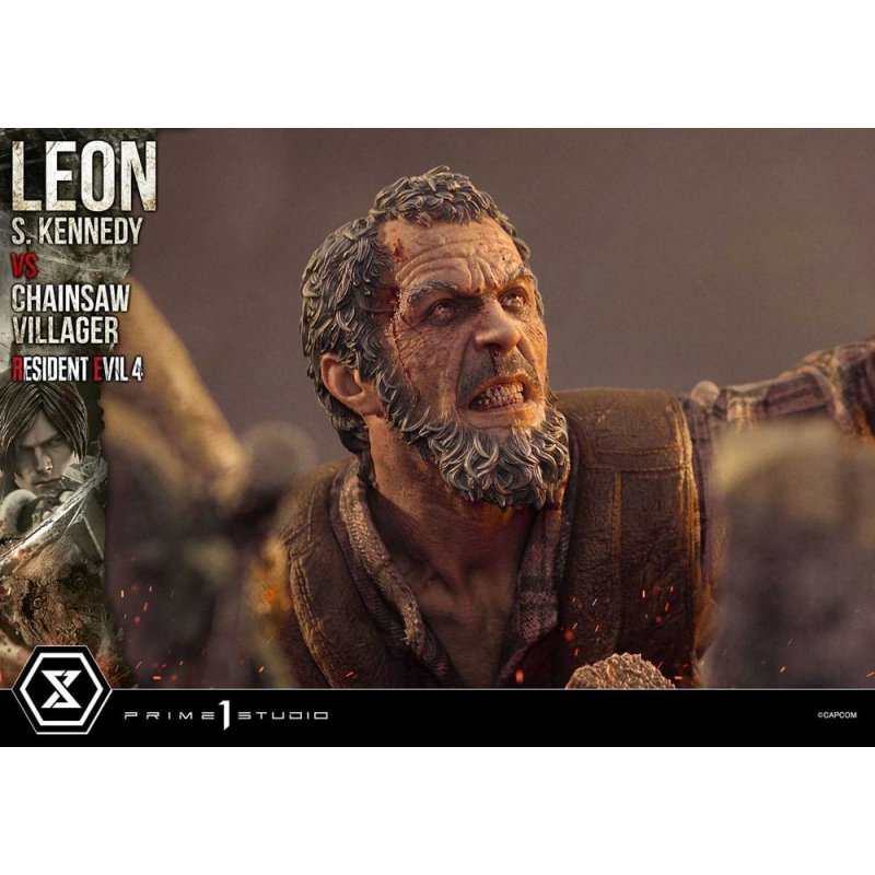 A Bullet Piercing Madness, A Chainsaw Evoking Fear.The Tension of "Resident Evil 4," Frozen in an Iconic Showdown.Hailed as the pinnacle of remake titles, Resident Evil 4 brings to life the iconic showdown between Leon S. Kennedy and the Chainsaw Villager!This statue captures the clash of life and death in the world of Resident Evil 4, depicting the intense battle between Leon and his nemesis. Every detail, from their locked gazes to the weight in their stances, has been carefully crafted to freeze this tense moment in time.Leon's mature expression, the gunsmith's engraving on his handgun, and the soft fur of his bomber jacket are all meticulously recreated with diverse sculpting and painting techniques, bringing out his distinctive charm.The Chainsaw Villager is rendered with equally terrifying precision. The vivid splatter of blood, finely tuned with precise color saturation, the hand-painted abdominal sprays, and the eerie burlap sack that hints at the head beneath-all are crafted in extraordinary detail.The custom base, featuring the Ganado wielding an axe, evokes the madness of a desolate European village. From the Los Iluminados cult emblem to the chickens and gold and silver eggs, every inch is filled with details to explore.The statue also includes swappable parts, such as two distinct head sculpts for Leon and both arms holding either his custom handgun or combat knife. Leon's slightly parted lips convey heightened emotion, while his extended left hand measures distance, ready for a parry or counterattack. Each part brings to life a variety of combat scenarios. Add a piece of this grueling rescue saga to your collection! Product Specifications:·Resident Evil 4 Themed Base - 2 x Swappable Heads (Closed Mouth, Open Mouth) - 2 x Swappable Pair of Arms (SG-09 R, Combat Knife)