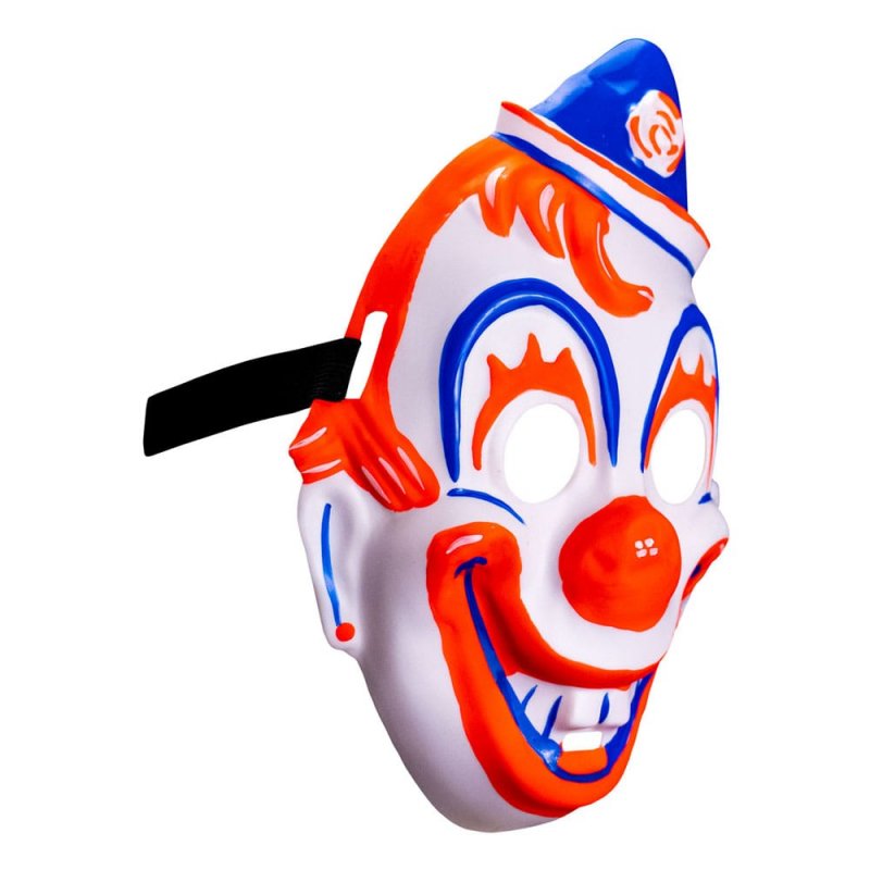 From Rob Zombie Halloween Film Collection comes the officially licensed Young Michael Myers Clown Mask! This is the mask Michael wears for his very first kill in Halloween (2007). This mask was developed using the film used master mold direct from Special Effects Artist Wayne Toth, who made the masks for the film!Injection molded mask with elastic strap for easy wear.Approximately 25 x 18 cm