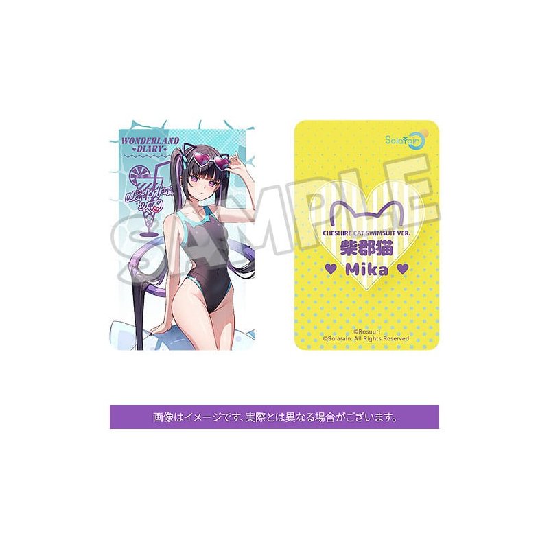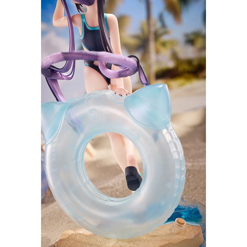 Popular illustrator Rosuuri's original character Cheshire Cat Mika is now a scale figure in her summery swimsuit! Mika wears a slightly displeased expression on her face, but is betrayed by the excitement displayed by her lifted tail. Her adroable "tsundere" moment has been carefully immortalized in figure form. Her deep purple school swimsuit and heart-shaped sunglasses all add to her adorable yet cool charm. The figure is packed with visual highlights such as Mika's cat-ear accessories, fluttering twintail hairstyle, cat-shaped swim ring and slightly displeased gaze-all of which highlight her mischievous charm. The base of the figure is sculpted to look like a sandy beach with starfish and beach bottles on the sand. The base of the figure can be connected to the base included with White Rabbit Rosu: Swimsuit Ver.! Be sure to add Rosu and Mika to your collection! White Rabbite Rosu: Swimsuit Ver. Collector's Card