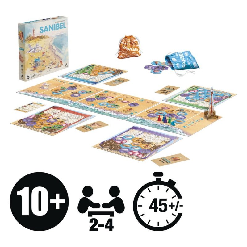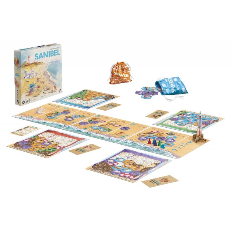 Sanibel Island, Florida is known for its treasure trove of seashells. Stroll its shore and collect shells and other natural wonders: sand dollars, sea stars, crabs, and more! In the Sanibel board game, designed by Elizabeth Hargrave, players move their player token along the beach-themed board, drafting shell tiles and strategically arranging them on their mat for points. Collect different shell sets and combinations to earn the most points possible. The player with the highest score wins! The rules are simple to learn, and players can enjoy mastering strategies in this highly replayable game. Enjoy it as a game for 2 players or with up to 4. Tile laying games and family board games are fun games for a vacation home, Family Game Night, and after dinner. Strategy board games for adults and family are also wonderful gifts for kids ages 10+, teens, and adults.