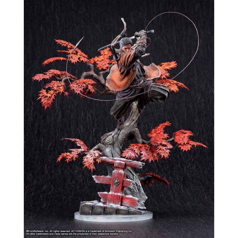 "From FromSoftware's action-adventure game, SEKIRO: SHADOWS DIE TWICE, comes a statue of the protagonist, Wolf.This epic masterpiece faithfully recreates the world of Sekiro, depicting the Sengoku period and its fantastic and vivid atmosphere at a size of over 400mm in 1/7 scale, down to its composition, shape, and materials.- The subtle details of Wolf (main unit) throughout the figure, such as the frayed cloth, fine hair ties, the prosthetic arm, and knots, are made using PU (polyurethane) resin, a hard but flexible material. Areas of exposed skin, such as the head, use a special type of PVC material to recreate realistic skin textures in exceptional detail. - The sword, Kusabimaru, is made from a resin that contains metal, giving it a substantial sense of weight. - The maple leaves are made of thermoset ABS, which allows them to be thinner while still offering excellent durability. Both the leaves and the tree are embedded with magnets, making assembly easy and stress-free. Even when displayed, the magnets ensure that the leaves stay in place and do not easily fall off. - The base, inspired by the Fountainhead Palace where Wolf confronts the Corrupted Monk, uses transparent resin and mist-like materials to capture the height of the bridge and the scale of the towering trees. - The grappling hook that extends from Wolf's Shinobi Prosthetic contains a built-in wire, allowing it to be flexibly bent and posed to recreate scenes from the game. - A Bundled Jizo Statue figure is included as an accessory. The statue is made from cloth and resin mixed with stone for an aged texture, giving it a game-accurate feel. - Concept The concept for this figure is based on the iconic battle scene between Wolf and the Corrupted Monk in front of the Okami Gate. This intense encounter, unfolding on a vermilion bridge underneath towering maple trees, stands out as one of the most memorable moments in the game. The figure captures the moment Wolf launches himself toward the monk, with the force of his kick rippling through the surrounding environment, expressed in the swaying of the great tree. - Paint The texture of Wolf's skin, clothing, and accessories, stained with the blood and sweat of surviving his battles, has been recreated in painstaking detail. The snow resting on the bridge blends naturally with the wood and fallen maple leaves, beautifully capturing the delicate transition of melting snow. Crafted from semi-transparent materials, the crimson leaves allow light to gently filter through their tips, enhancing their realism. Every detail is meticulously hand-painted for stunningly lifelike textures.- Total height: 420mm (base included) - 1/7 scale - Wolf figure height: 270mm - The maple leaves are embedded with magnets for simple assembly (23 locations total). - The sword, Kusabimaru, is made from metal-infused resin for added weight and realism. - The Shinobi Prosthetic grappling hook includes an internal wire that allows for flexible posing. - Includes a game-accurate 1/1 prop of the Bundled Jizo Statue. - Comes with an engraved aluminum serial number plate. "