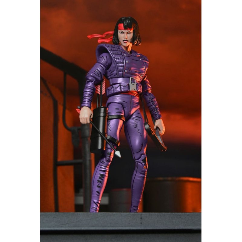 Based on her cover appearance in the "City at War" storyline in Eastman & Laird's Teenage Mutant Ninja Turtles comic books from Mirage Studios! Karai, the new leader of the Foot Clan, is both a fearsome foe and uneasy ally to the Turtles. Featuring an authentic, stylized comic book deco, this Karai Mercenary action figure is ready to join your TMNT collection. The 7-inch scale NECA figure includes interchangeable hands, bow and arrow, and quiver. Comes in collector-friendly window box packaging with artwork by Kevin Eastman.