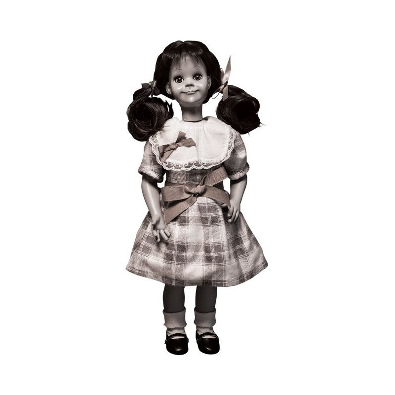 A dysfunctional family's problems are made worse when the child's doll proves to be not only sentient but also evil. Living Doll is the 126th episode of the The Twilight Zone and arguably the most famous episode thanks to the star of the episode, the Living Doll, Talky Tina. Now is your chance to own your very own Talky Tina Doll.The Officially Licensed One-To-One Scale Twilight Zone Talky Tina Doll is the most screen accurate Talky Tina Doll ever produced. Every detail of Talky Tina is included in this amazing Doll.The head and body of the doll are made vinyl for maximum durability and color accuracy. The arms, legs and head move so that you can pose Talky Tina anyway you'd like. The clothing is made from a thick polyester / cotton blend and are identical to the screen used Doll. And just like the screen used Doll, Talky Tina stands 21" tall.In addition, Talky Tina talks and says all her phrases from the episode:My name is Talky Tina and I love you very much. My name is Talky Tina and I don't think I like you. My name is Talky Tina and I think I could even hate you. My name is Talky Tina and I'm beginning to hate you. I could hurt you. My name is Talky Tina and I don't forgive you. I told you you'd be sorry. You'll die. I can stand it if you can. My name is Talky Tina and I'm going to kill you. My name is Talky Tina and you better be nice to me.The Dolls comes in a beautiful window Collectors Box.