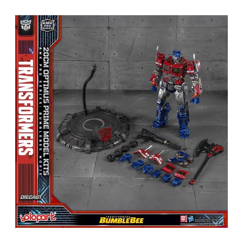 This is a model kit of Optimus Prime from Transformers: Bumblebee. Manufactured by Yolopark, this AMK PRO Series kit stands 20 cm tall.