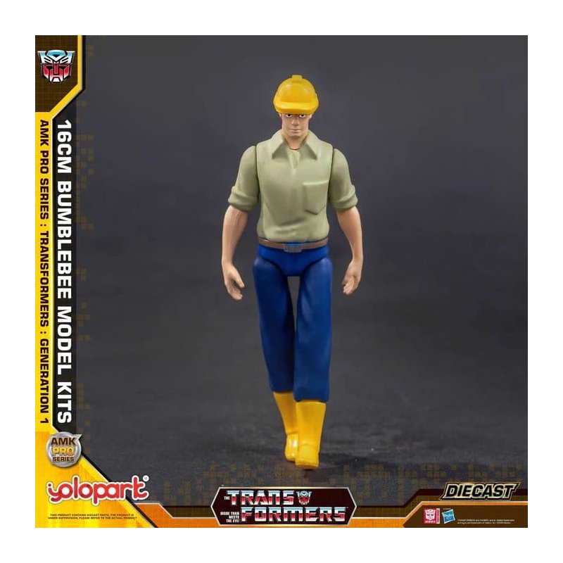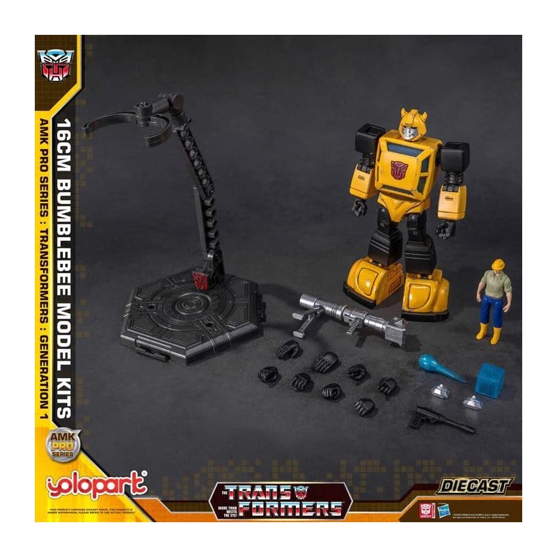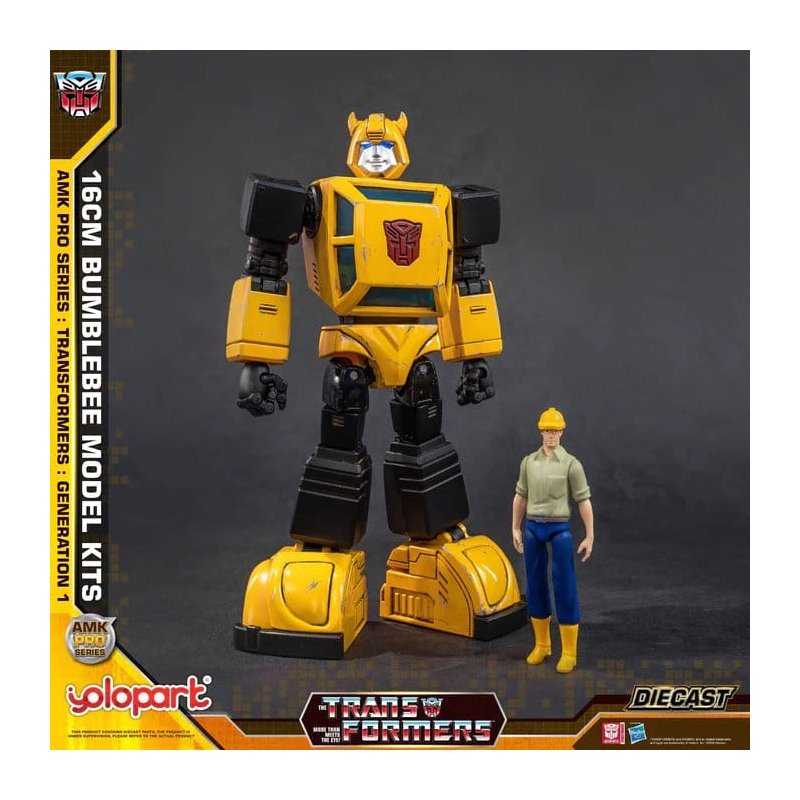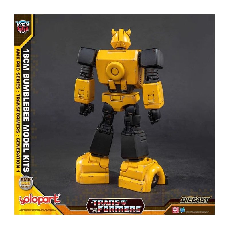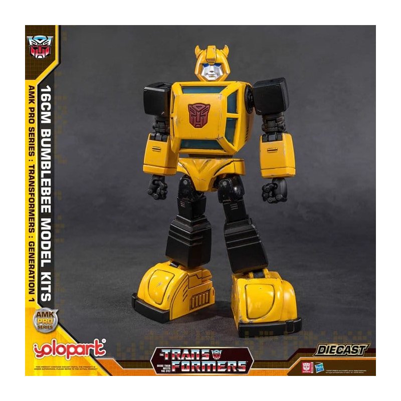 This is a model kit of Bumblebee from Transformers: Generation One. Manufactured by Yolopark, this AMK PRO Series kit stands 16 cm tall. Requires batteries (not included).