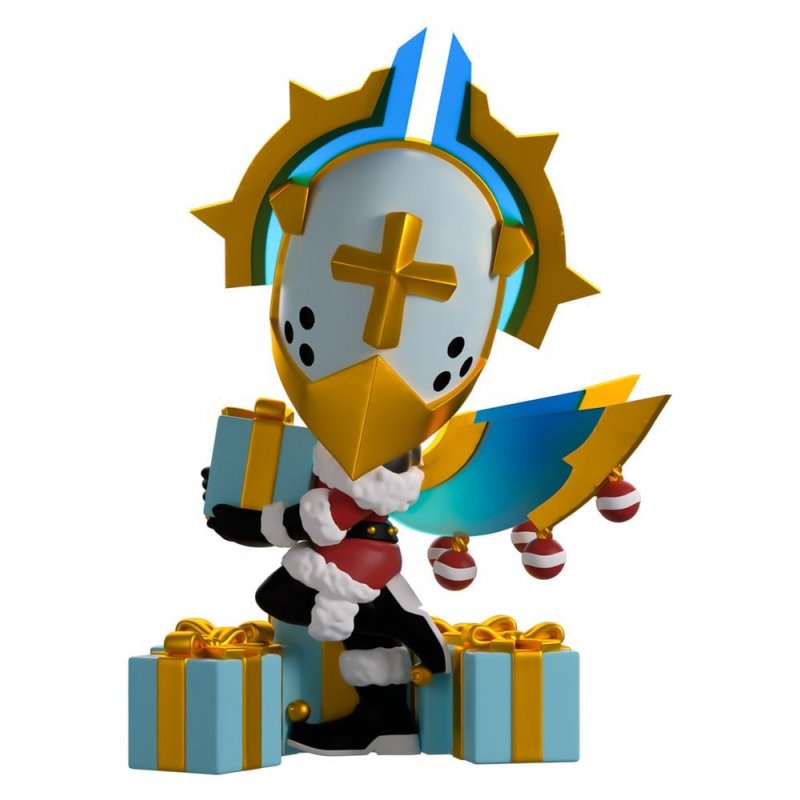 "I've only known the taste of Eggnog"Gabriel has graced Youtooz with his presents! Get it... Presents! Standing at 5.1 inches tall in front of a pile of gifts with a raised left leg and holding a blue present to his chest, a pale helmet covers his head with three holes on either side and a gold cross at the center, which matches the pointed chin and band running around its back. Making sure to bring all the cheer, he's dressed in a red Santa outfit with fluffy white hems, along with black pants and boots, as red and white baubles hang from the blue and gold wings stretching out from the back. The exterior of his packaging sees him bursting through the top of a present, while the interior is filled with dazzling gold rays of light. The protective sleeve is then covered with a fleshy red membrane and festive ornaments, as his figure can be seen through the large, clear window at the packaging's front. This collectible ships in a matte, embossed, protective outer sleeve and a custom-sized plastic protector for maximum protection during shipping.About Ultrakill:Ultrakill is a first-person shooter game developed by Arsi "Hakita" Patala and published by New Blood Interactive. With retro graphics and an array of wild weapons and robotic arms, its fast-paced gameplay plunges players into an interpretation of the layers of Hell as they fight demons, angels and competing machines!