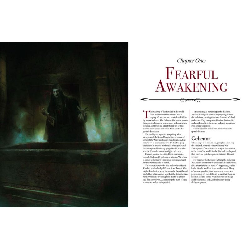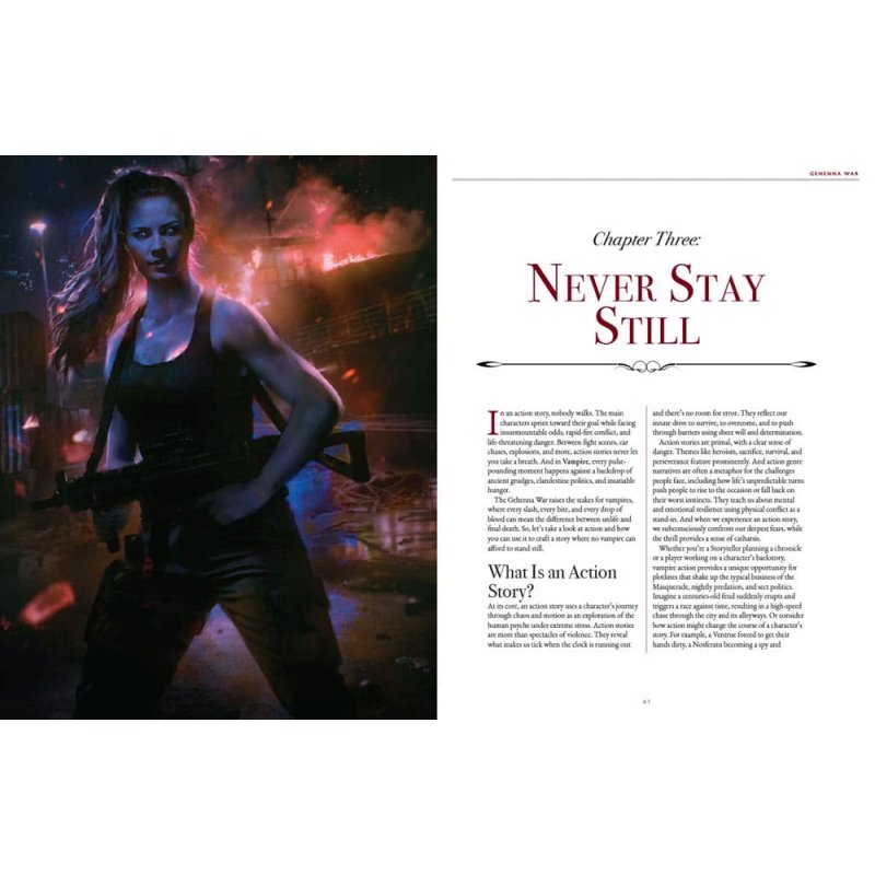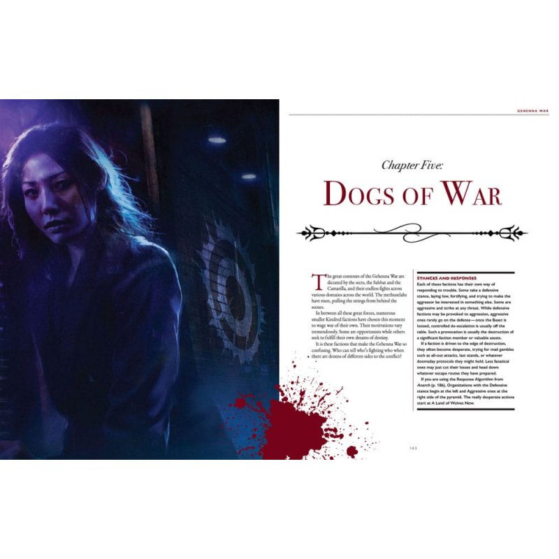 The Eternal Struggle at Your DoorstepFrom incessant intrigue to blazing action! Gehenna War brings the machinations of the elders and secret societies to your chronicle. Hunt the elders who were supposedly Beckoned away. Do you fight for the will of an ancient, a chance at the forbidden sin of Diablerie, or to protect what truly matters to you?Gehenna War provides material both for players and Storytellers to make the game sing, focusing on fast-paced action and how to weave it into stories and chronicles.Gehenna War is a sourcebook for Vampire: The Masquerade, a Storytelling Game of Personal and Political HorrorFeatures- An overview of the Gehenna War and its impact on the major Kindred sects - Rules for creating action-focused characters for action chronicles along with pre-written stories to drop into any chronicle - New combat options and equipment and distinct factions fighting in the Gehenna War - Advice for using Bestial Failures and Messy Criticals in any chronicle - Emphasizes action conflict including chases, gunfights, dueling, infiltration - Provides information on new factionsMature Content Warning: Contains graphic and written content of a mature nature, including violence, sexual themes, and strong language. Reader discretion is advised.