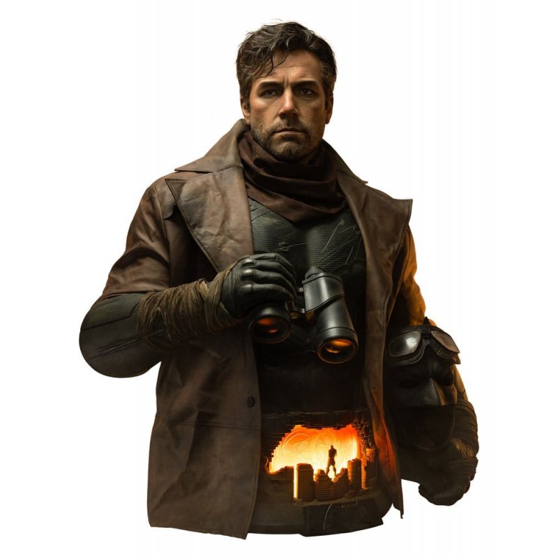 Knightmare Batman is a future version of Batman from Zack Snyder's Justice League, set in the infamous Knightmare Timeline-a post-apocalyptic world where Earth has fallen to Darkseid. Reduced to a barren desert wasteland, this version is also known among fans as "Desert Batman" or "Wasteland Batman".This dark future is one of the visions foreseen by Bruce Wayne after Darkseid uses the Anti-Life Equation to conquer Earth, manipulating Superman and bringing human civilization to the brink of extinction. - Lois Lane is killed, Superman falls under Darkseid's control, and heroes such as Wonder Woman and Aquaman perish. - Bruce Wayne forms a resistance alongside survivors including The Flash, Cyborg, Mera, Deathstroke, and even the Joker. - Their final plan involves stealing the Mother Box and sending The Flash back through time to prevent this future. - Across multiple timelines, Bruce ultimately chooses self-sacrifice to secure humanity's last hopeCharacter Traits:- Burdened by Guilt- Haunted by the belief that he failed Superman and the world. - Unbreakable Leader - The strategic and spiritual core of humanity's resistance. - Cold Pragmatist: Willing to ally with former enemies when survival demands it. - Master Strategist: Always planning, calculating, and searching for a path to victoryDesign Concept:In a world reduced to sand and ruins, Bruce Wayne stands as humanity's final beacon-battle-worn, relentless, and unyielding. Inspired by this vision, Infinity Studio presents the 1/1 Knightmare Batman Silicone Bust, capturing the lone hero who stands against the end of the worldMaterial: Polystone, Resin, High temp synthetic fibers, Real Fabric, LED light
