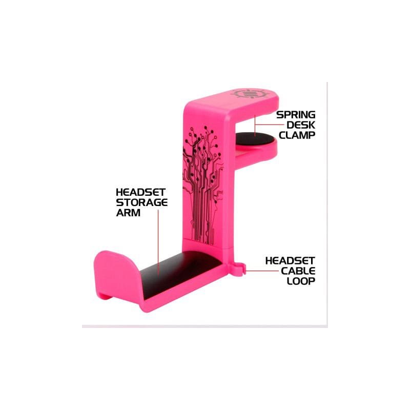 ENHANCE Headphone Mount - Desk Gaming Headset Holder with Clamp On Under Desk Design & Cable Clip. Keep your desk looking clean and protect your PC gaming headset from scratches with the ENHANCE computer gaming headset mount holder.The headset holder clamps onto your desk and holds firmly to prevent accidental movement or dropping. The headset stand has a fully adjustable and rotating arm to store your headphones underneath your desk or swing it forward to easily place your headphones onto the arm for quick storage. The clamp opens up to accommodate desks up to 40mm thick.Also features a built in cord holder to keep your headset's cable organized and prevent it from dragging on the floor or getting caught between your chair's legs.