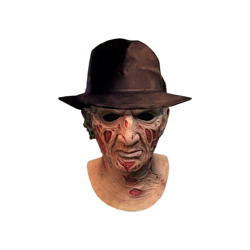 Trick or Treat Studios and Warner Bros. Pictures are proud to present the officially licensed A Nightmare on Elm Street Deluxe Freddy Mask with Fedora Hat.Based on hundreds of screen and behind the scenes photographs, this is the ultimate Freddy Krueger Mask from Wes Craven's original classic, A Nightmare on Elm Street. Every detail of Freddy, as played by the incredible Robert Englund is present in this mask.In addition to this incredible mask, this version of the mask comes with a beautiful replica of the Fedora Hat worn by Freddy Krueger in A Nightmare on Elm Street.So get yourself the official Nightmare on Elm Street Deluxe Freddy Mask with Fedora Hat and show everyone who the king of nightmares is this Halloween.- Officially licensed adult costume accessory - One size fits most