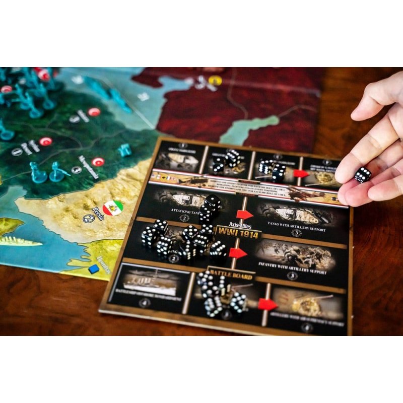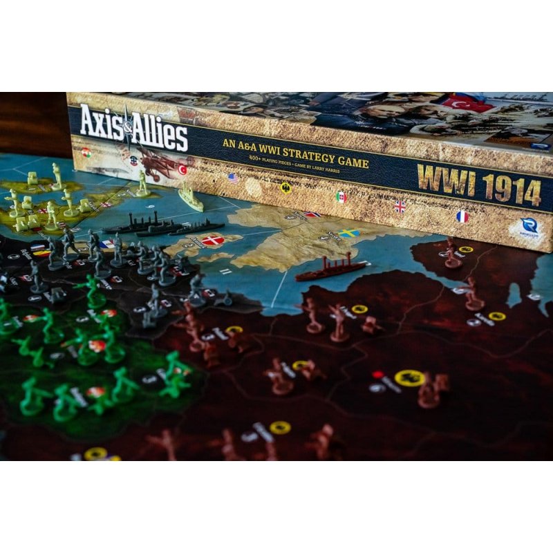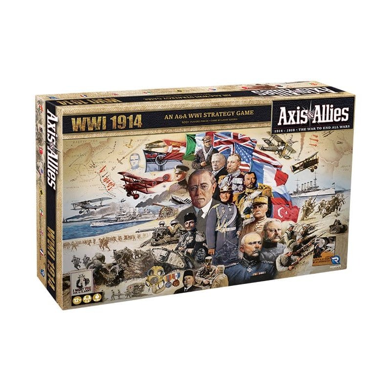 With the assassination of the Archduke Franz Ferdinand of Austria by a Serbian nationalist in Sarajevo, a fuse is lit and the armies of Europe, and soon the entire world, will be on the march. This war will be like no other ever fought in human history. With the introduction of machine guns, flying machines, tanks and chemical weapons, casualties will be measured in the millions, and advances against the enemy measured in yards. Eight major powers struggle for supremacy. The Central Powers of Germany, the Austro-Hungarian Empire, and the Ottoman Empire are aligned against the great alliance of France, the British Empire, the Russian Empire, Italy, and eventually the United States.What's New: - Updated Renegade Limited Edition - Includes more German and British Empire infantry units, 30 more chips, and rulebook updates from official errata!Features: - Epic Axis & Allies gameplay set in World War I. - Over 400 plastic miniatures! - Extra large 34" x 32" game board for a greater play experience.Contents Summary: - 2 Game Boards - 8 National Storage Boxes - 1 General Storage Box - 1 Battle Board - 1 Rulebook - 36 Dice - 120 National Control Markers (15 for Each Power) - 190 Chips (70 Light Red, 25 Dark Red, 70 Light Blue, 25 Dark Blue) - Over 400 Plastic MiniaturesAt a Glance - Number of Players: 2-8 - For Ages: 12+ - Playing Time: 4-6 hours - Game Type: Strategy
