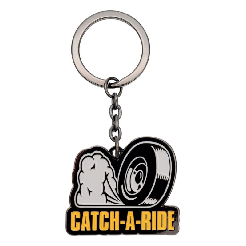 "Hey, listen to Scooter! Don't just stand there thumbs-up-yer-ass an' slack-jawed! Get you this siiick keychain!From the makers of turret-toting tricked out trucks now comes a new type of wheel. The Borderlands Catch-A-Ride Metal Keyring features an image of a screeching tyre trailed by billowing smoke, an image near and dear to the hot rodders of Pandora. Are you one of them? Then get this limited production accessory while you can! Catch a riiiiide!- Officially licensed - Limited to 9,995 - Individually numbered to reverse - 42.5 x 49mm"