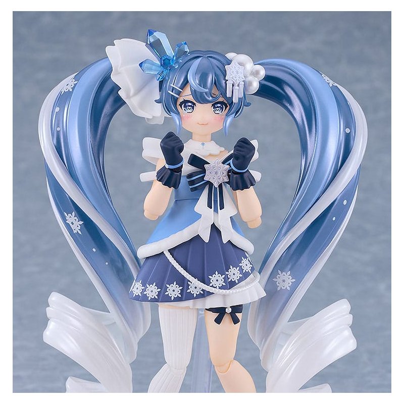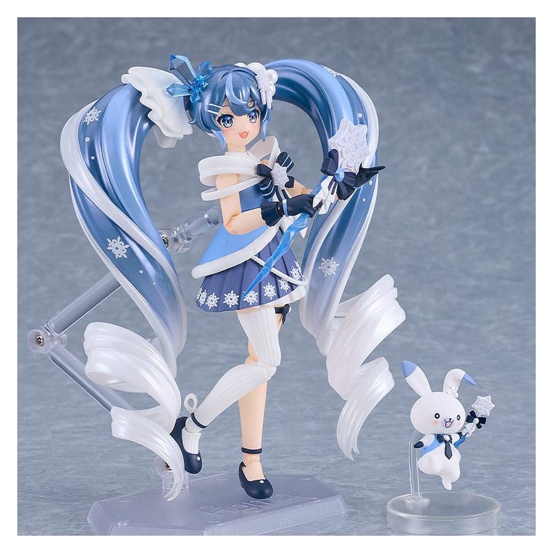2025 marks the 16th anniversary of Snow Miku, and the 2025 design was once again selected by fans through online votes between a selection of outfits all submitted to piapro by fans!Introducing a figma of Snow Miku designed by nekoneko, based on the theme "Glittering Snow Material"!Face plates:- Smiling face - Heart eyes face - Winking FaceOptional parts:- Rabbit Yukine - Wand - Heart effect parts - Other optional parts for different poses.