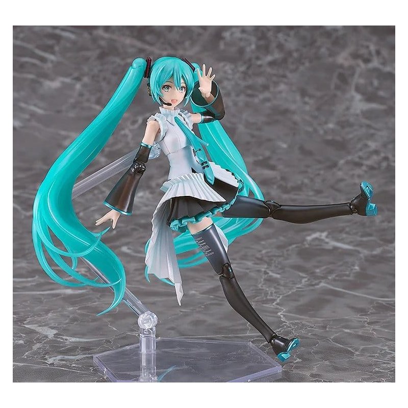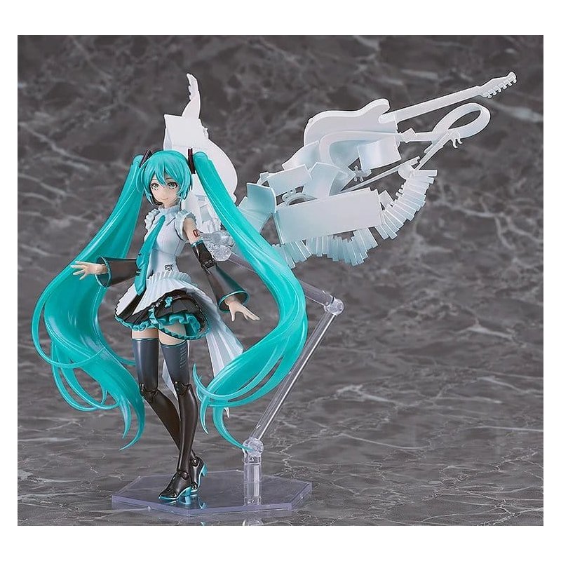From "Character Vocal Series 01: Hatsune Miku" comes the first PLAMATEA plastic model of Hatsune Miku, based on an illustration by Rella for Miku's 16th birthday. The plastic model is approximately 16 cm in height, highly articulated, and makes use of snap-fit connections for easy assembly. · Pre-painted face plates include: a smiling face, an open-mouthed smiling face and singing face. · Includes pre-painted parts, making it easy to recreate the character with a simple assembly. · Includes the "Wing of Form" and "Wing of Sound", based on the theme of "Wings of Creation". · An articulated stand is included to display the plastic model in a variety of poses.