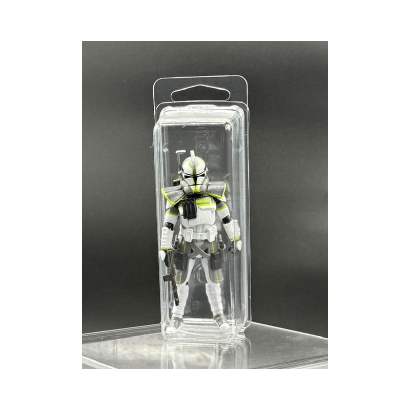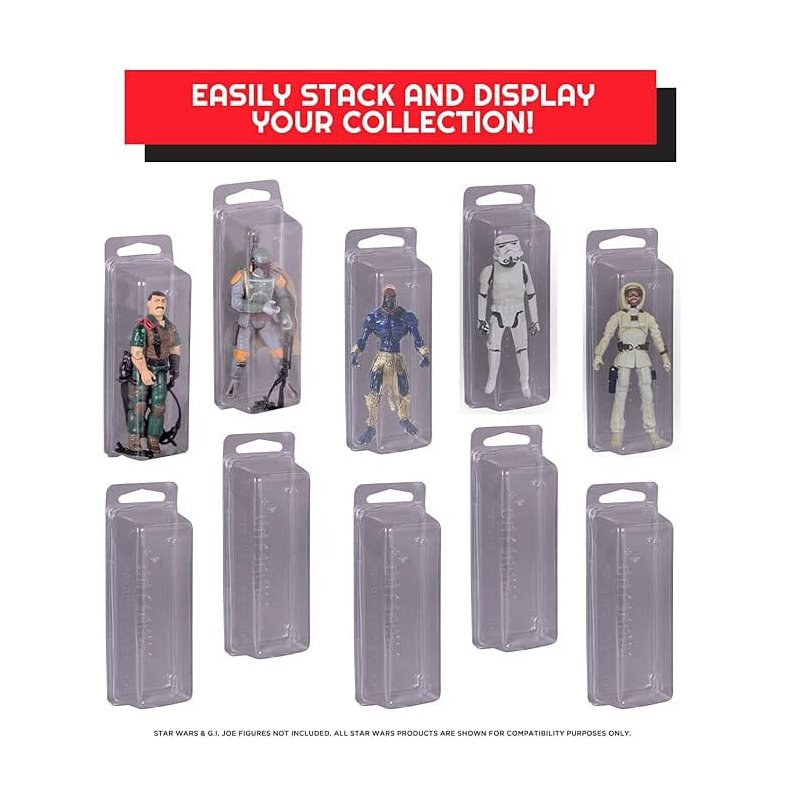 Showcase your 3.75" Star Wars & Gi-Joe figures with EVORETRO's 50-pack display case. Made from durable, scratch-resistant, UV-protected PET, these clamshells are clear, stackable, and protect against dust and fingerprints for a lifetime of pristine display.Size: 17,8 x 3,81 x 3,81 cm